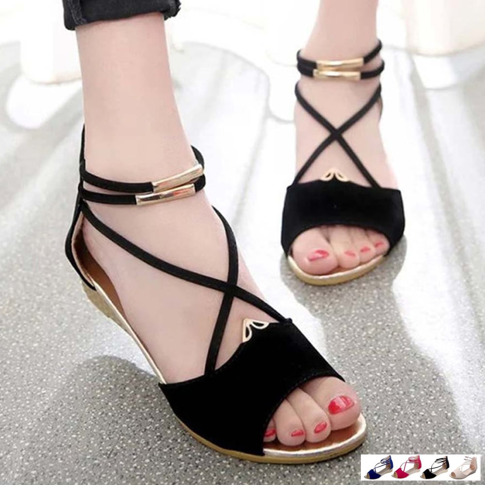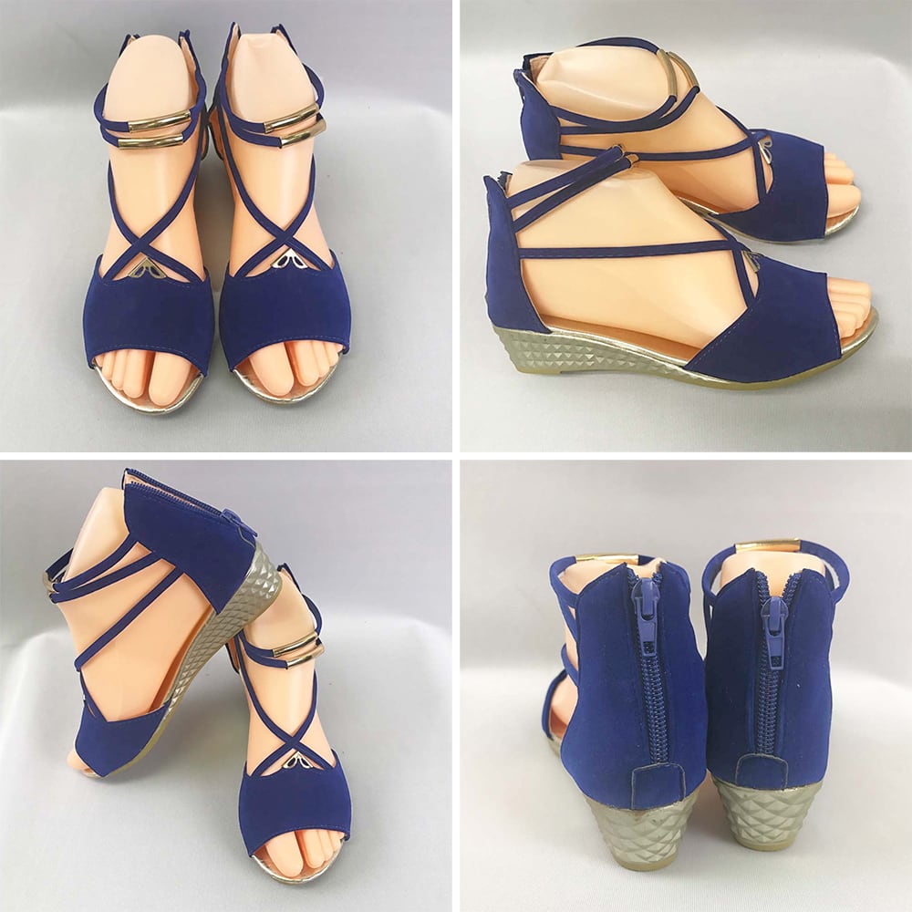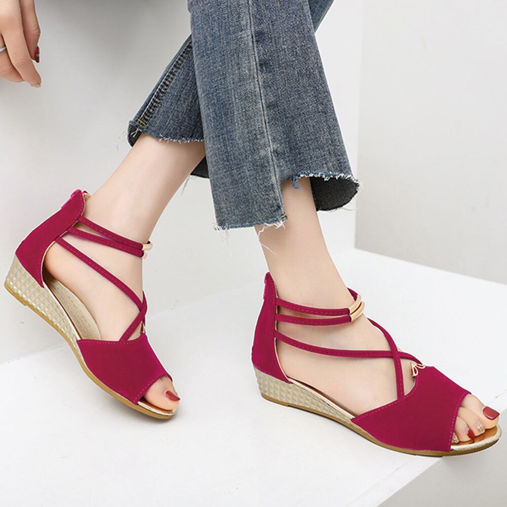 ウェッジソール ストラップサンダル 美脚 バックファスナー ローヒール グラディエーターウェッジサンダル 履きやすい人気