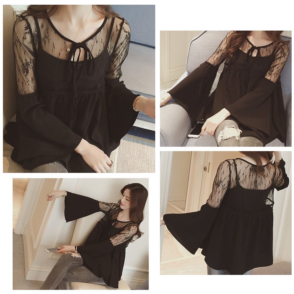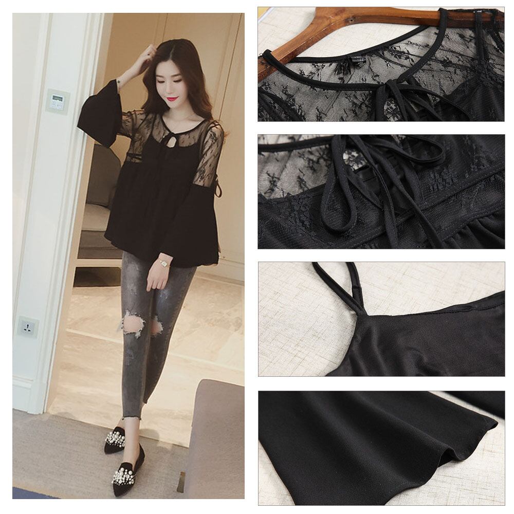 胸元から切り替えデザインのシースルートップスとキャミソールの2点セット