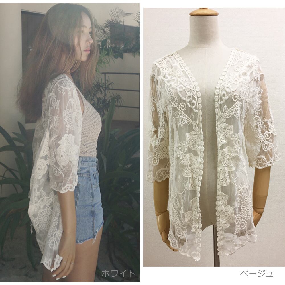 レースガウン ロング 花柄 5分袖 レースカーディガン レディース 薄手