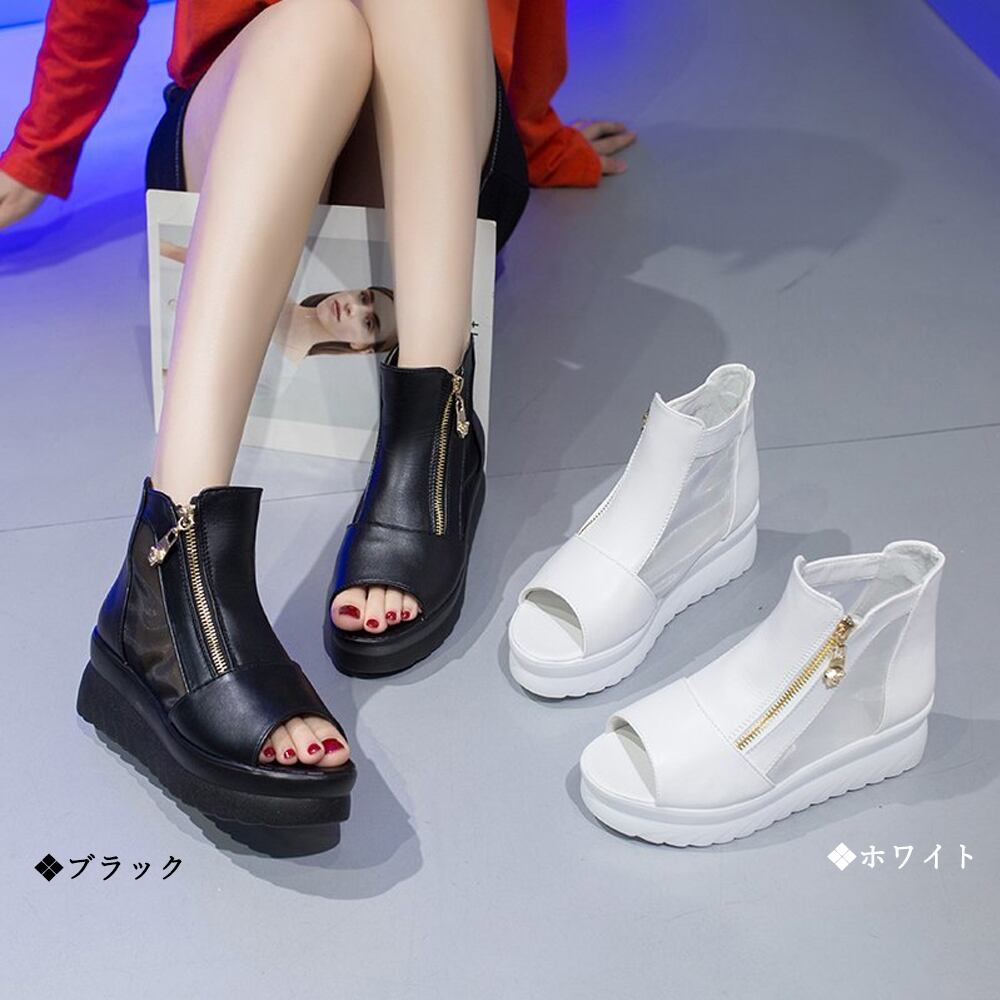 サマーブーツ 黒白 蒸れないサンダル夏 疲れにくい 厚底靴