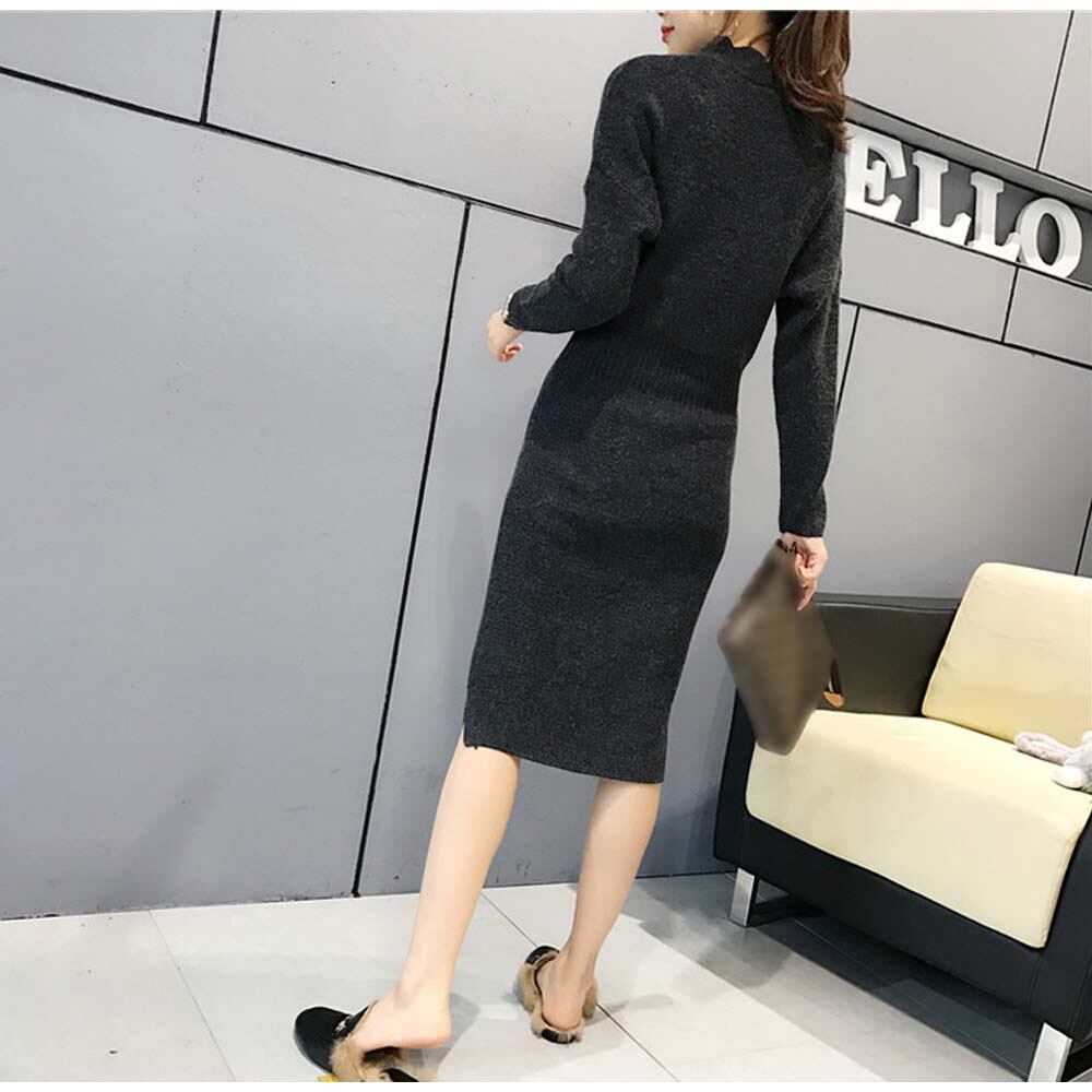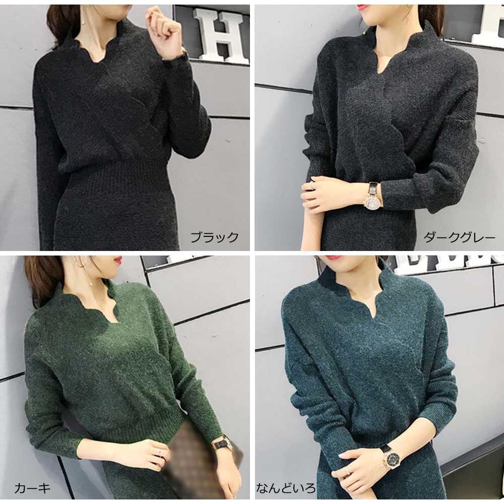 ニットワンピース vネック ワンピース 秋冬 膝丈 タイト ワンピ ミディアム