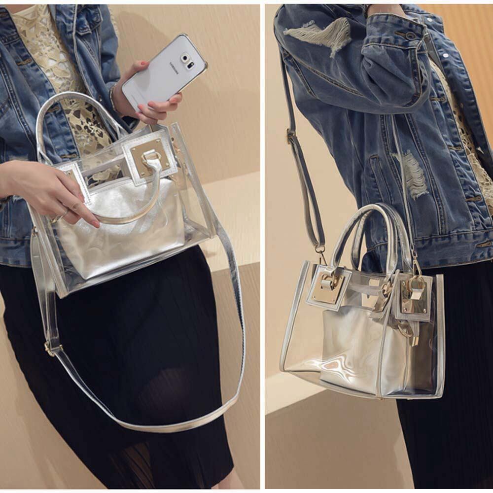 クリアバッグ レディース ショルダーバッグ プールバッグ 透明 トートバッグ
