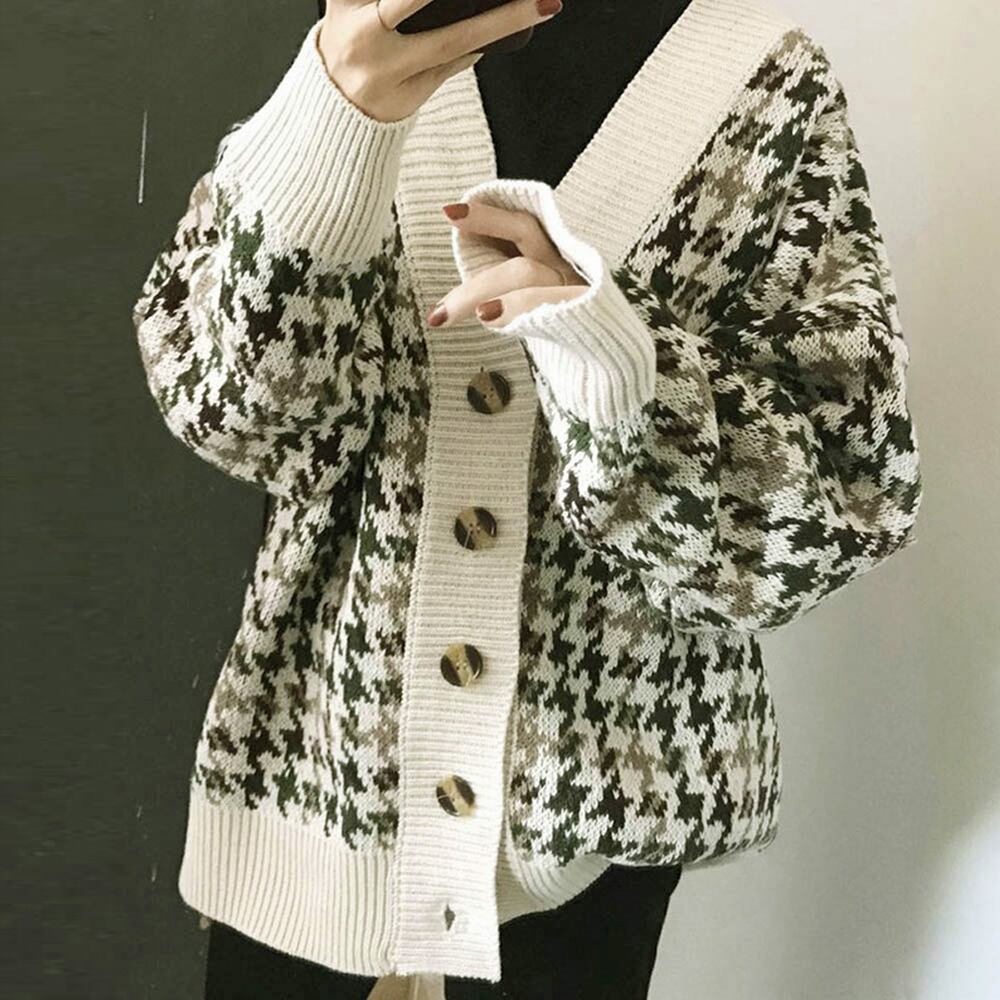 ニットカーディガン 厚手 長袖 vネック ニットトップス レトロ羽織り 配色ライトアウター 着回し カジュアル ゆったり