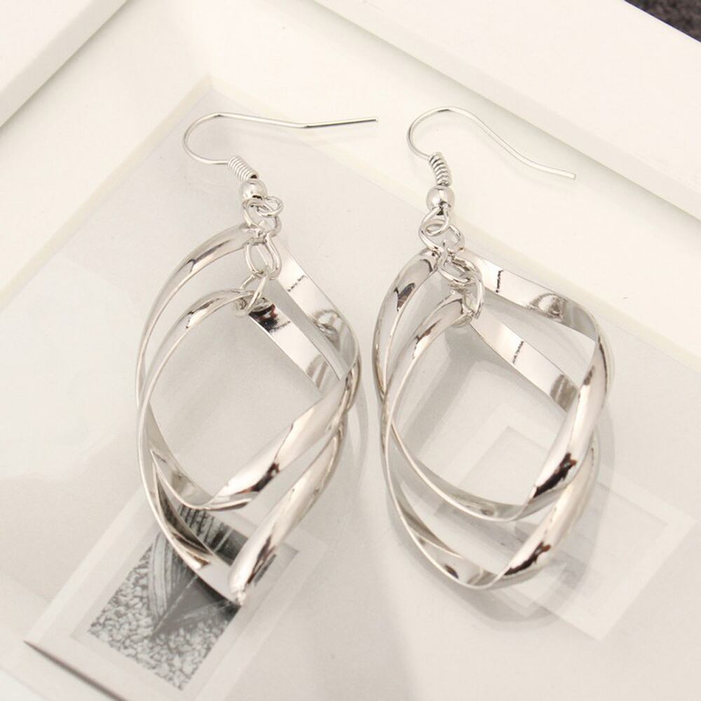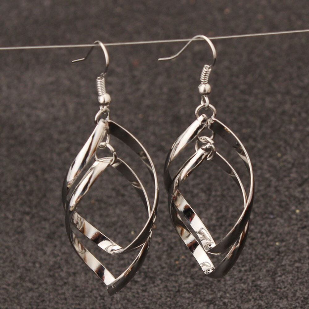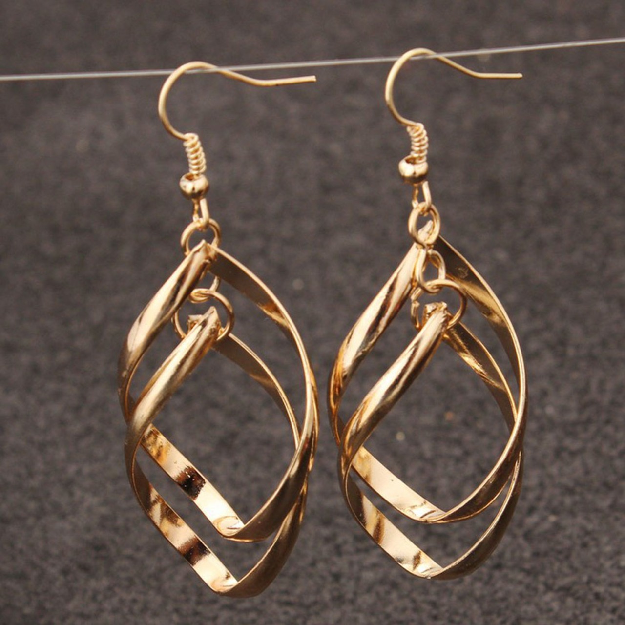 多層な菱形と輝く合金耳ジュエリーを組み合わせたフック型のピアス