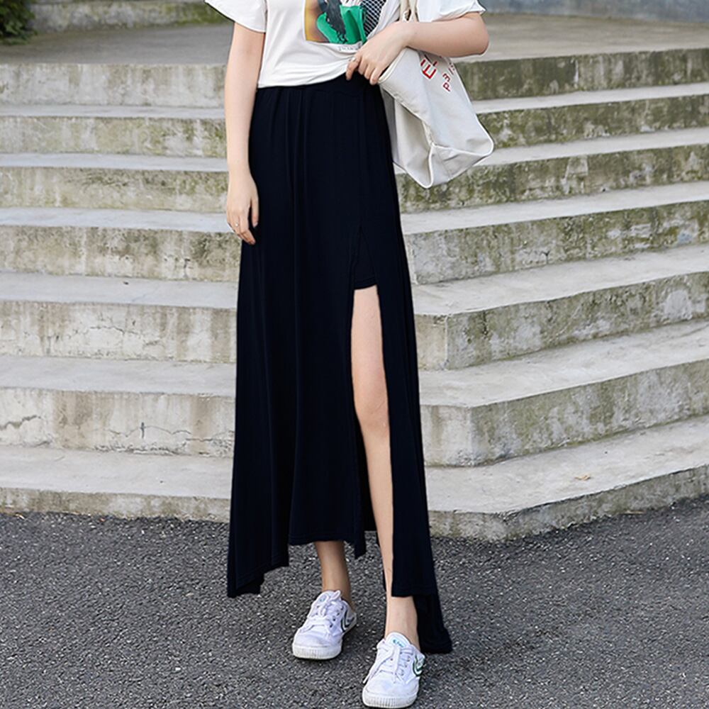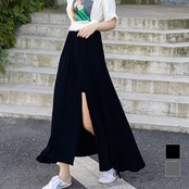 フレアスカート レディース ウエストゴム 深スリットスカート 薄手春夏スカート きれいめカジュアル モーダルスカート美脚