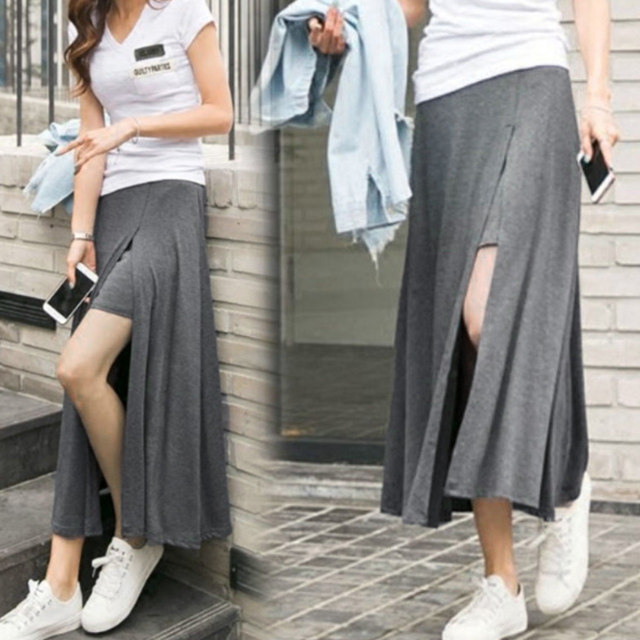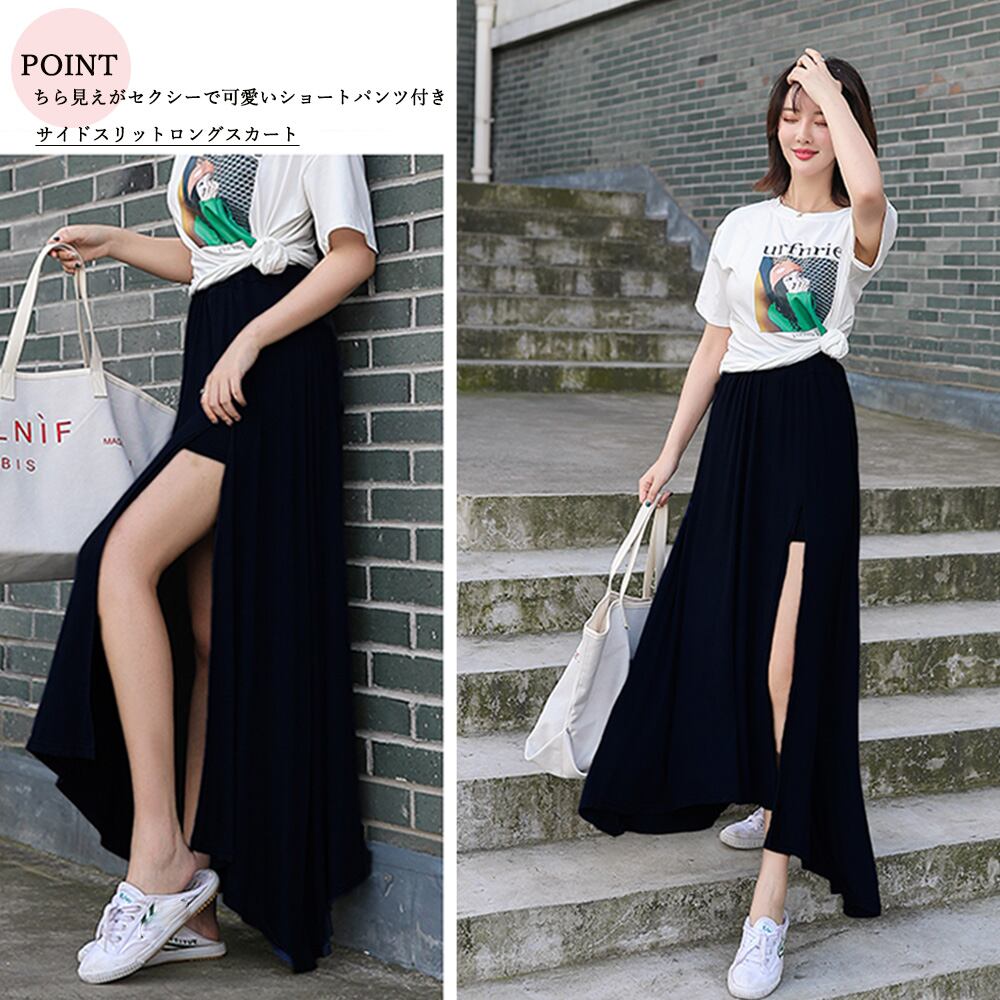 ちら見えがセクシーで可愛いショートパンツ付きサイドスリットロングスカート