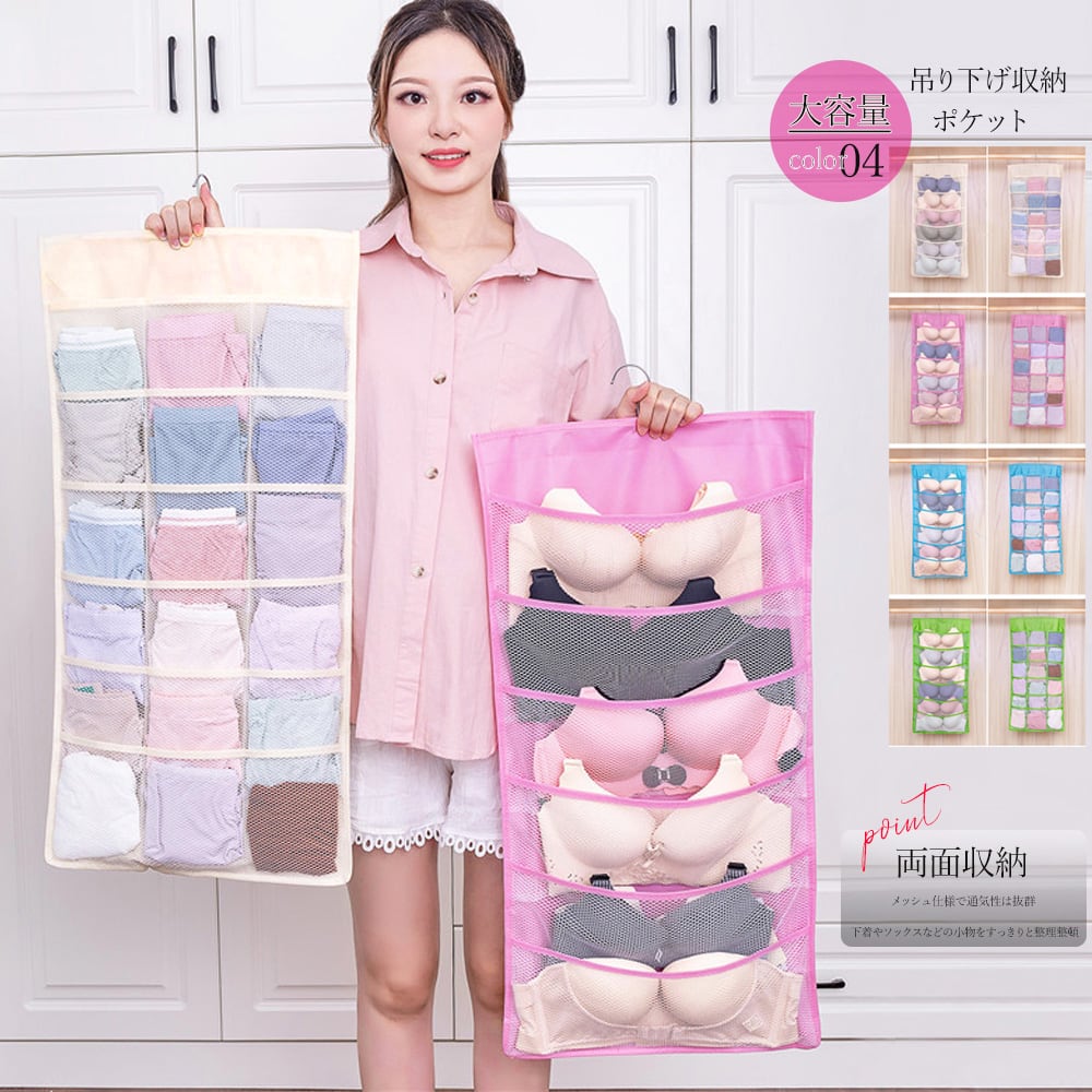 吊り下げ収納 ウォールポケット 下着収納 省スペース 両面収納バッグ
