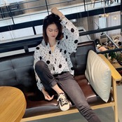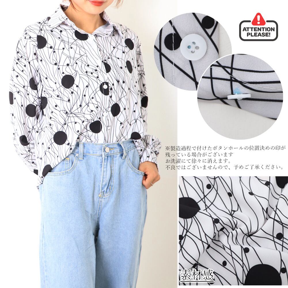 体型カバートップス プリント ブラウス 薄手 カジュアル