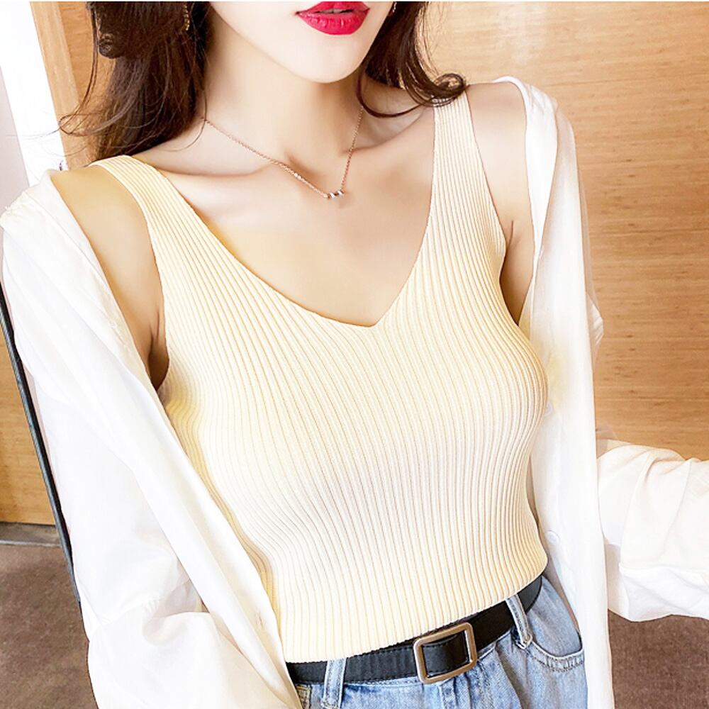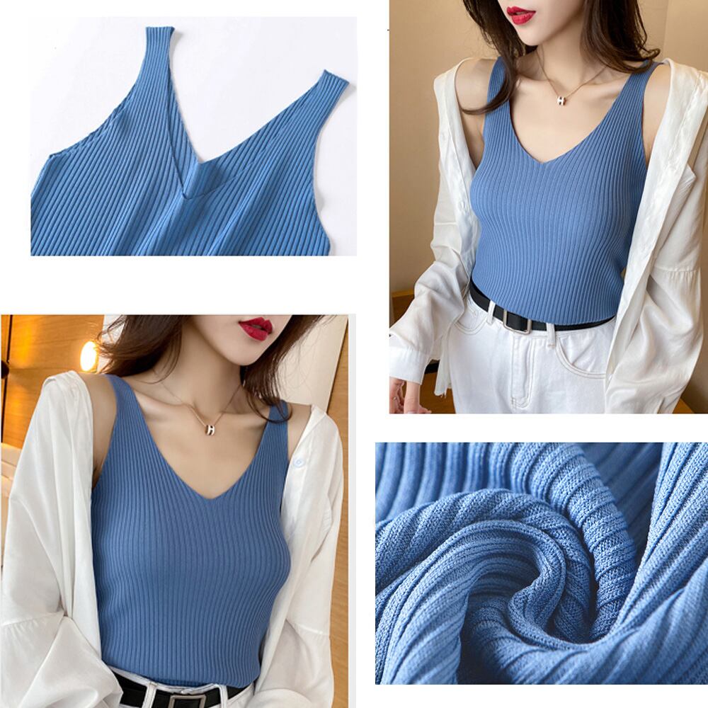 タンクトップ Vネック サマーニット ノースリーブ ニットキャミソール レディース シンプル インナー