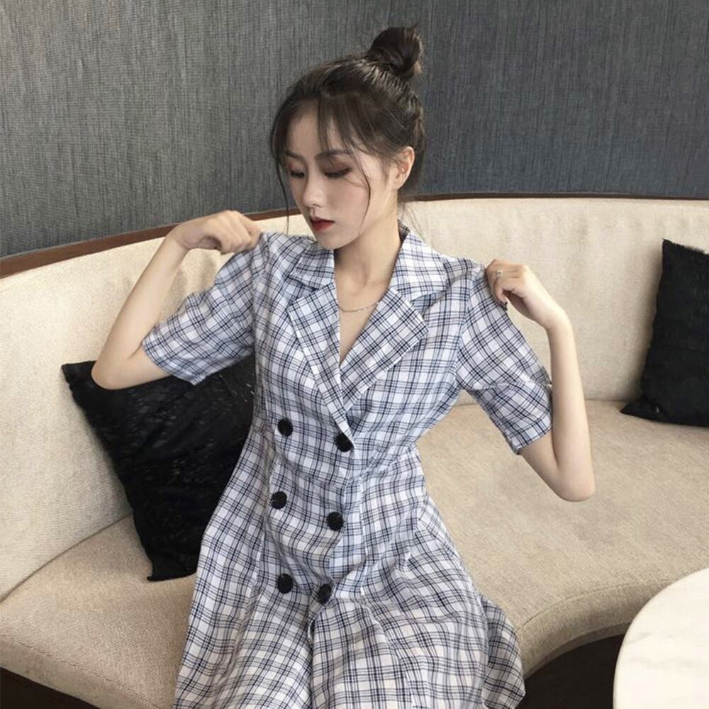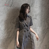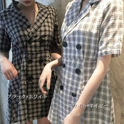 チェック柄 ワンピース レディース ミニワンピース 折り襟 ショート丈