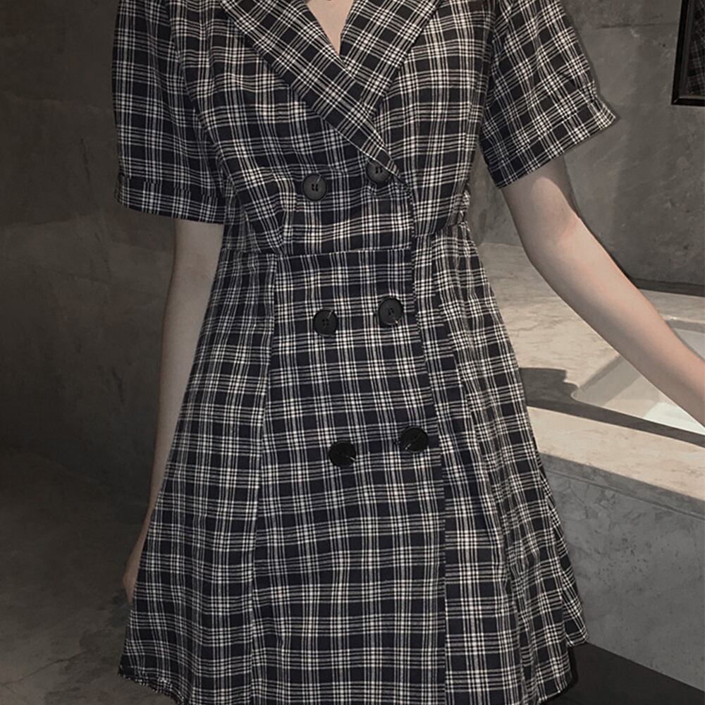 ダブルボタンのレトロなデザインで清楚な雰囲気が漂います