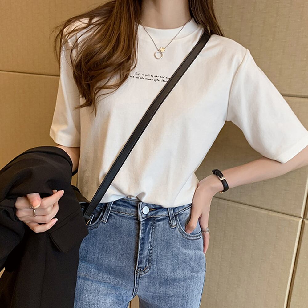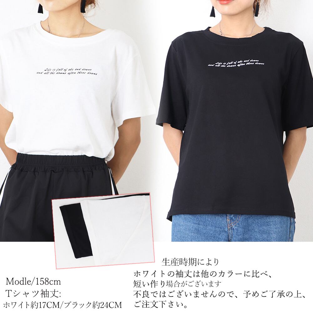 夏 ロゴtシャツ レディース 半袖 カットソー ラウンドネック 英字プリント
