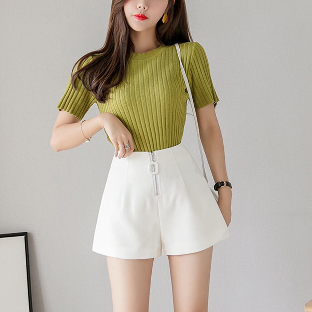 女性らしさを引き立てるふんわり広がるAラインのショートパンツ