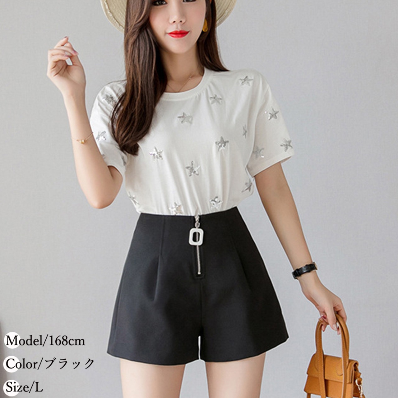 シフォン ショートパンツ レディース ハイウエスト ホットパンツ タック入り