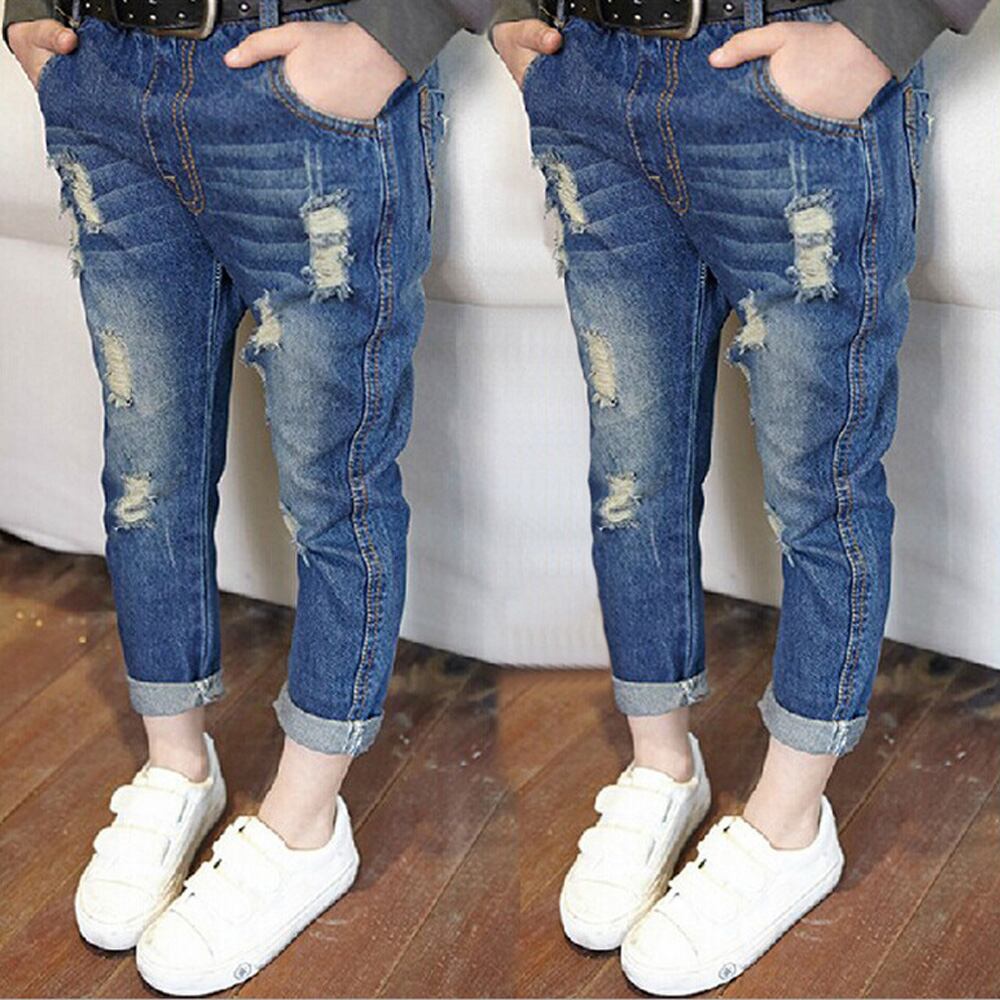 男の子も女の子もはきやすい、ダメージ加工をしたカジュアルなデニムパンツが新登場