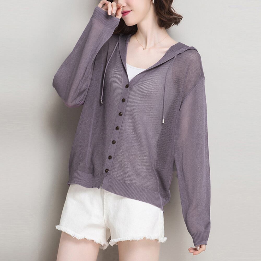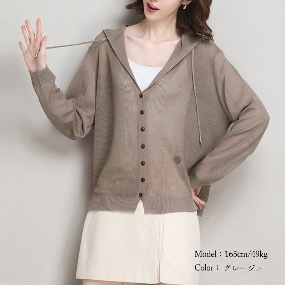 フード付き ニットカーディガン レディース 夏服 無地 ニットトップス 紫外線対策 薄手 透け感 羽織 大人 韓国