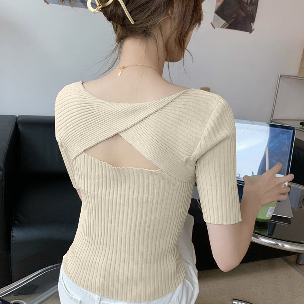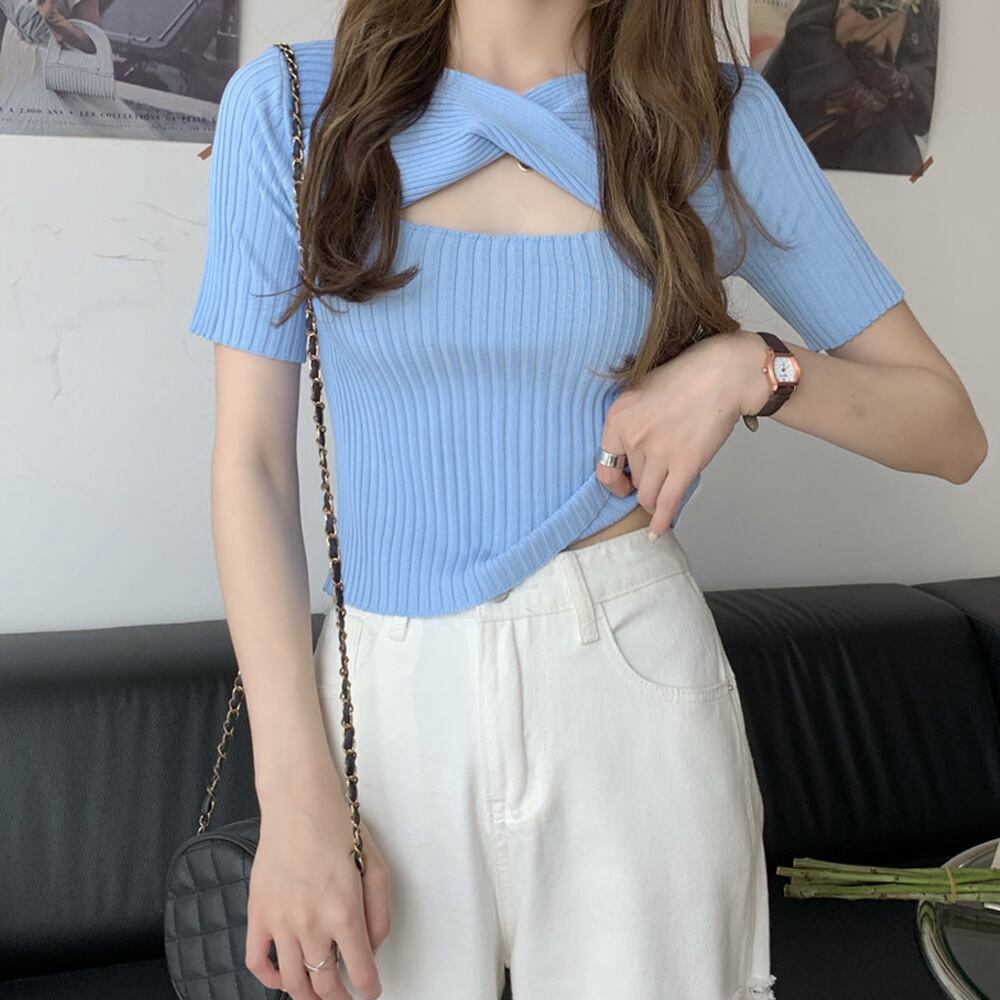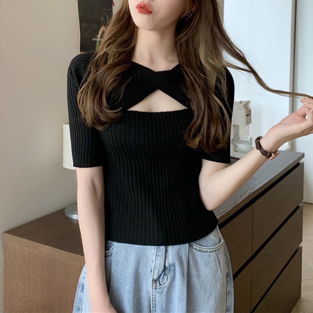 リブニットきれいめ セクシーニットソー カジュアルトップス