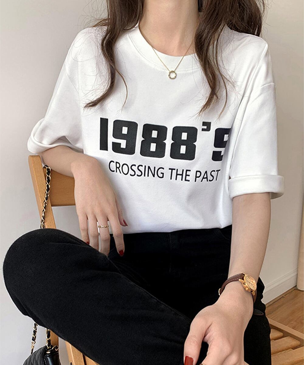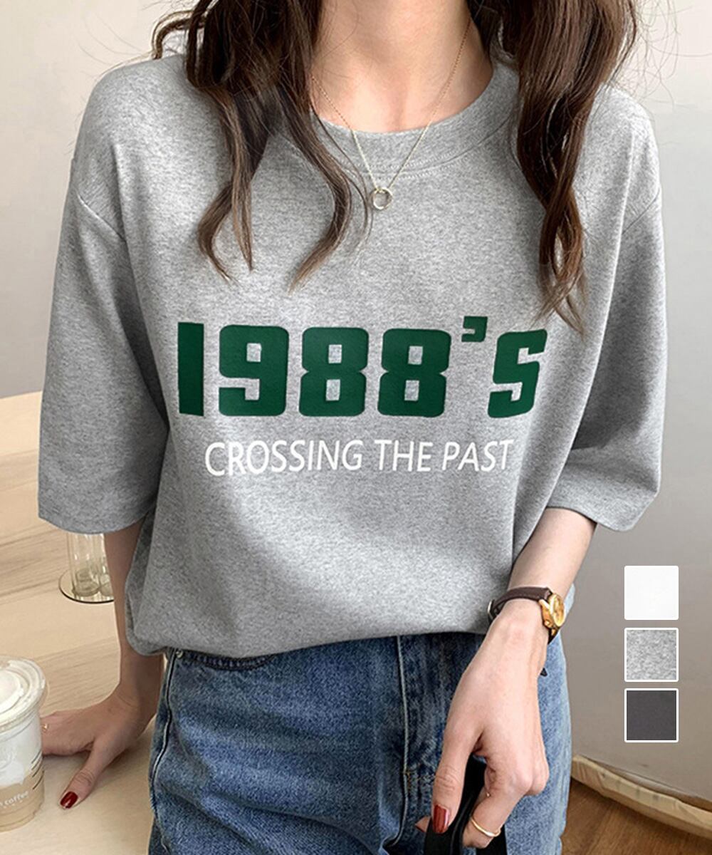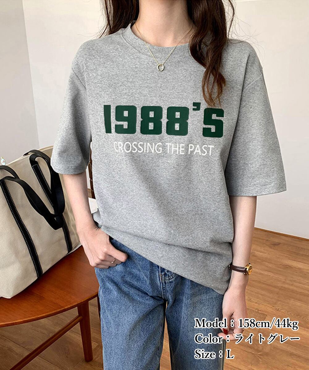 レディース 韓国 ラウンドネック カットソー 英字ロゴT 着やせ プルオーバー 大人女性 カジュアル トップス Tシャツ