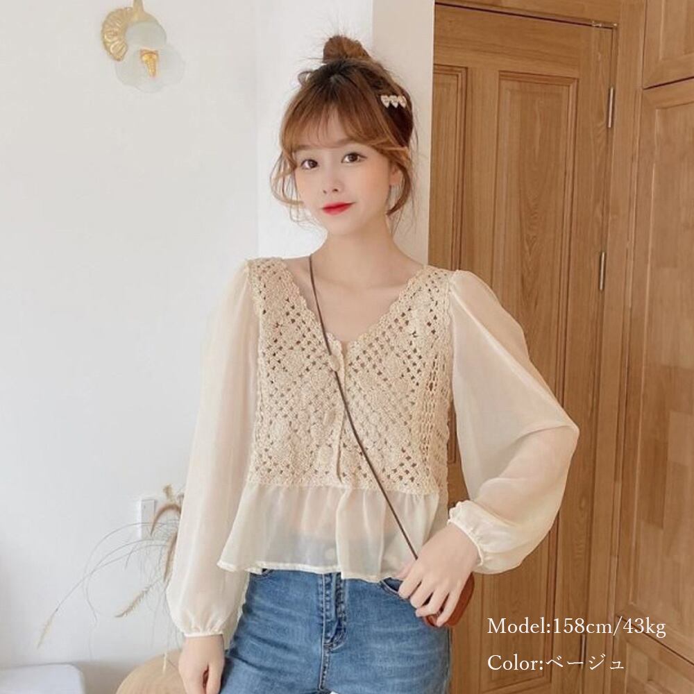 シフォン袖 シャツ 透かし ブラウス 薄手 トップス