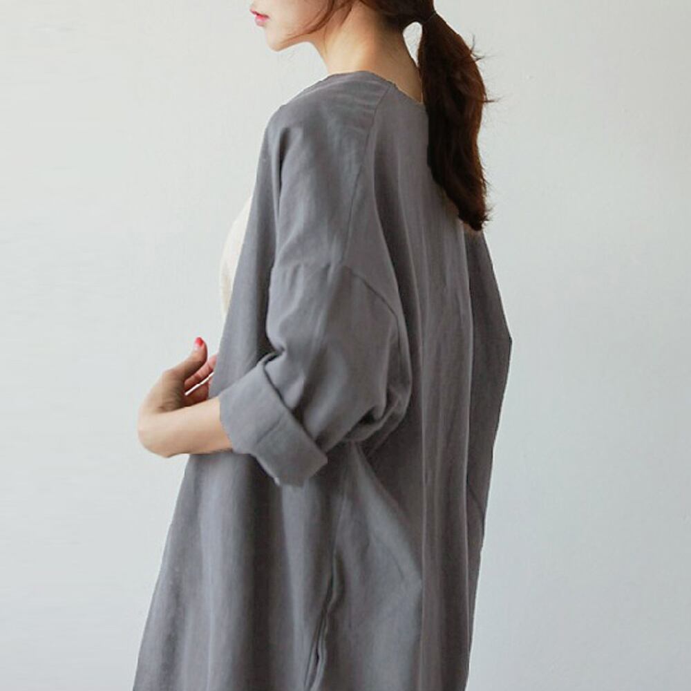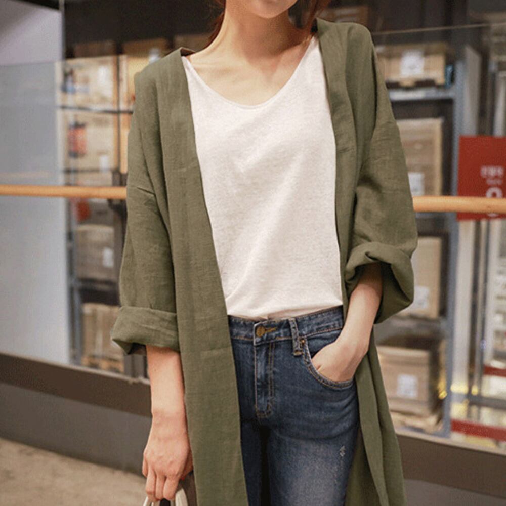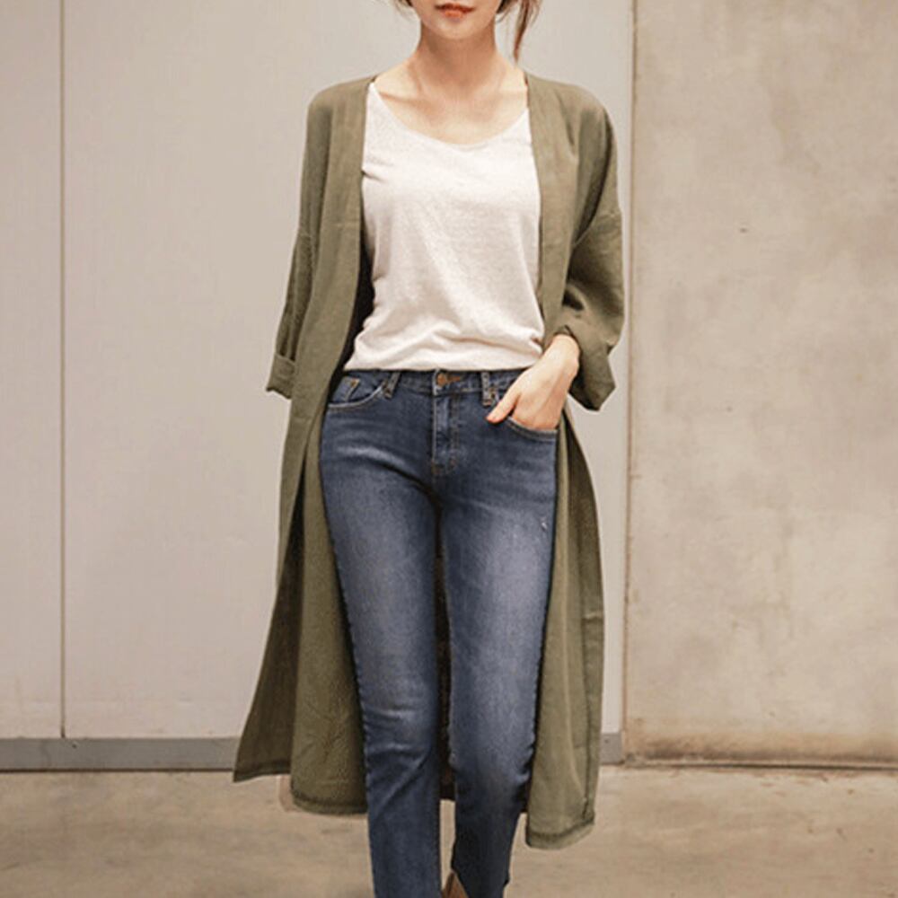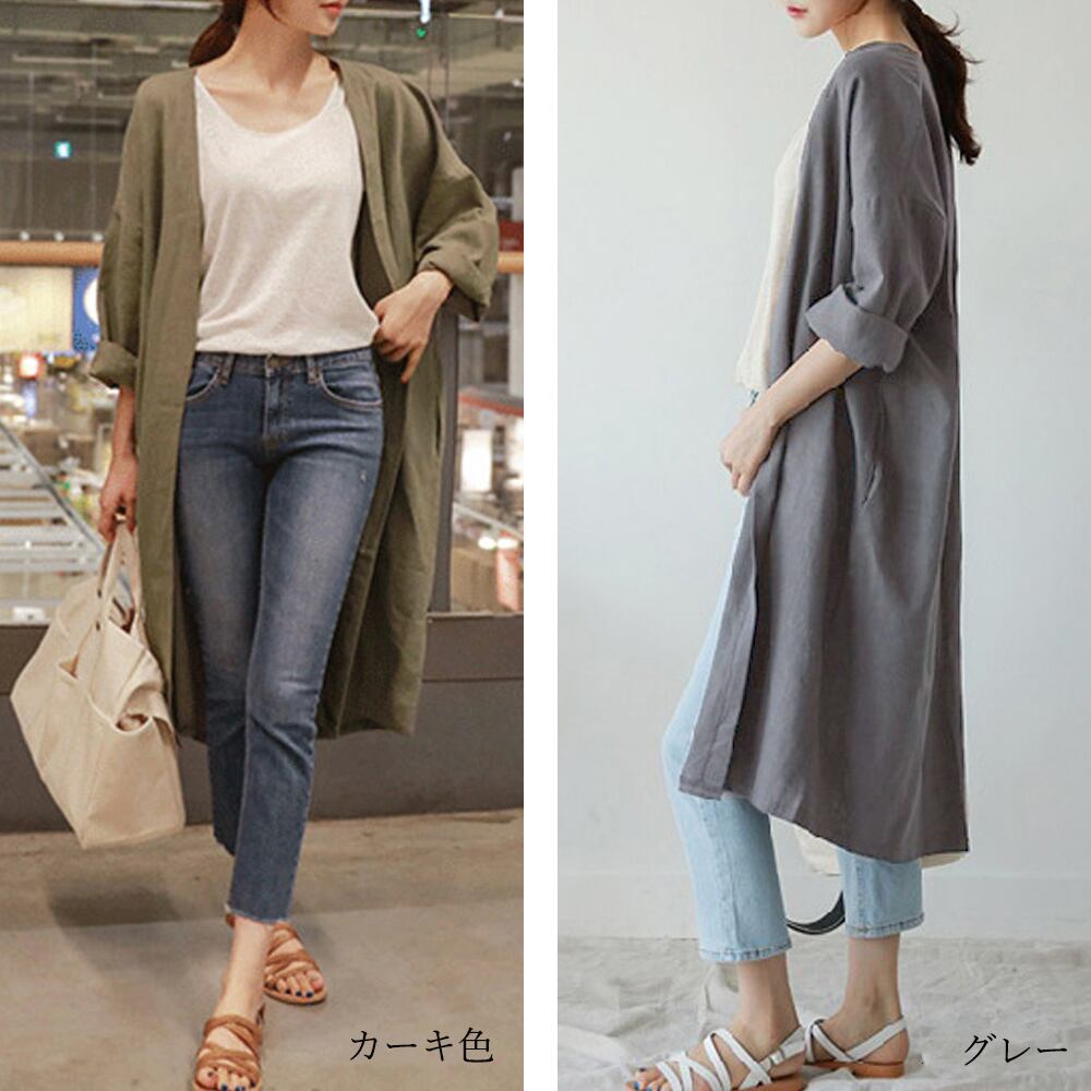 韓国ロングカーディガン 綿麻 薄手羽織り