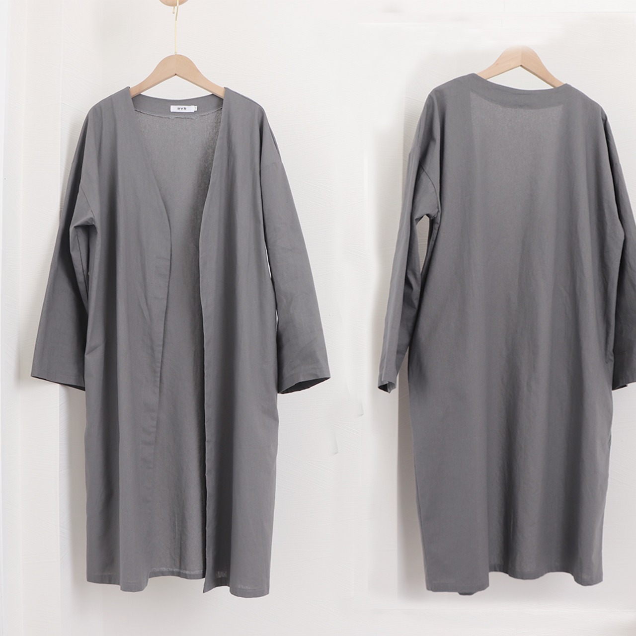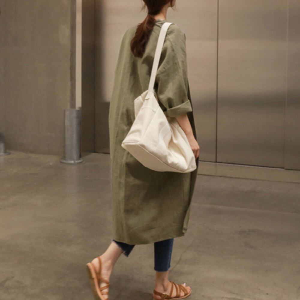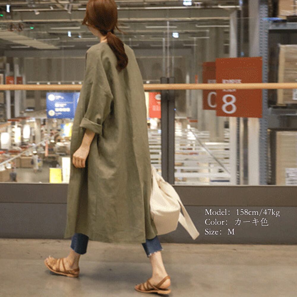 韓国ロングカーディガン 綿麻 薄手羽織り
