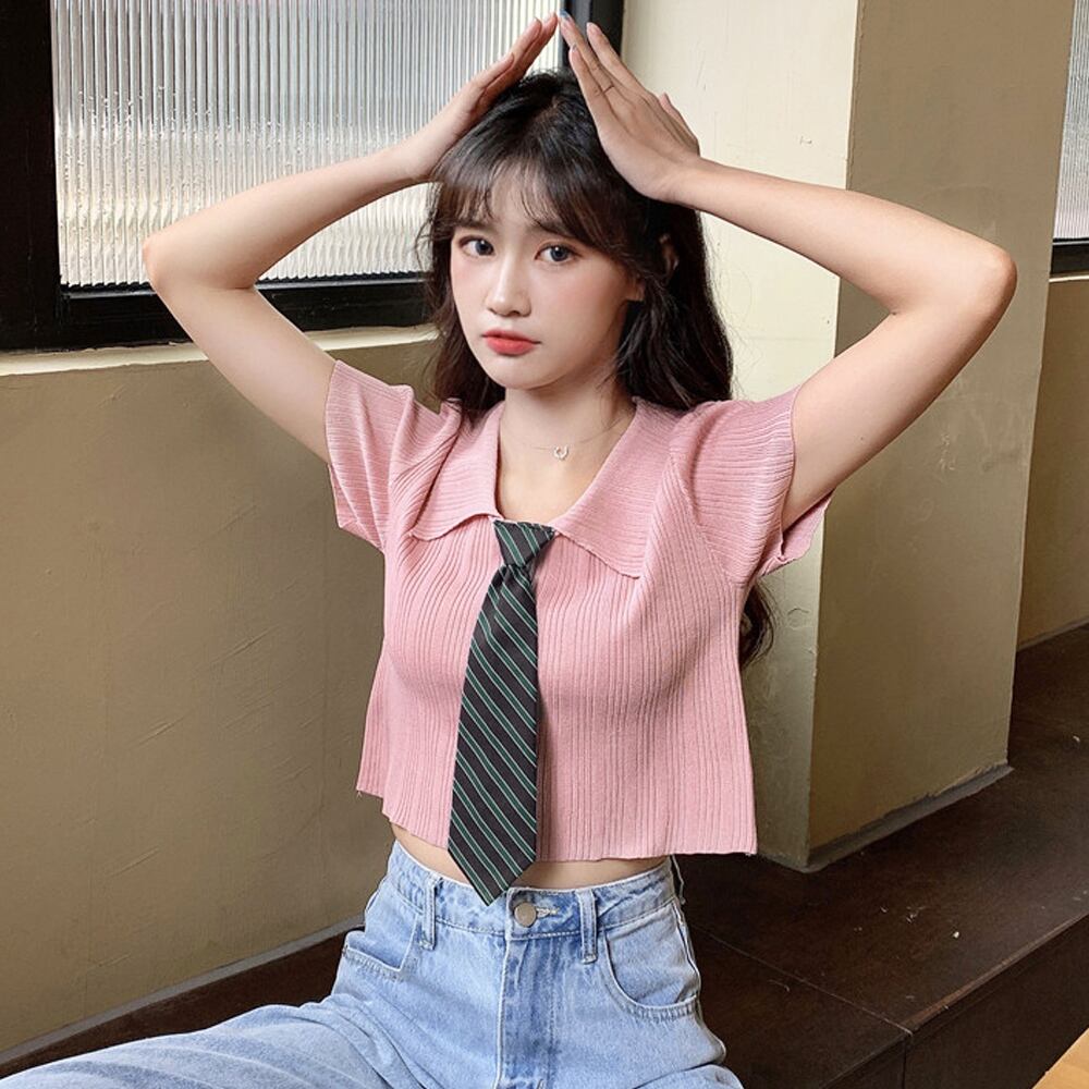 ニットトップス ネクタイ付き セクシー サマーニット おしゃれ カットソー コスプレ