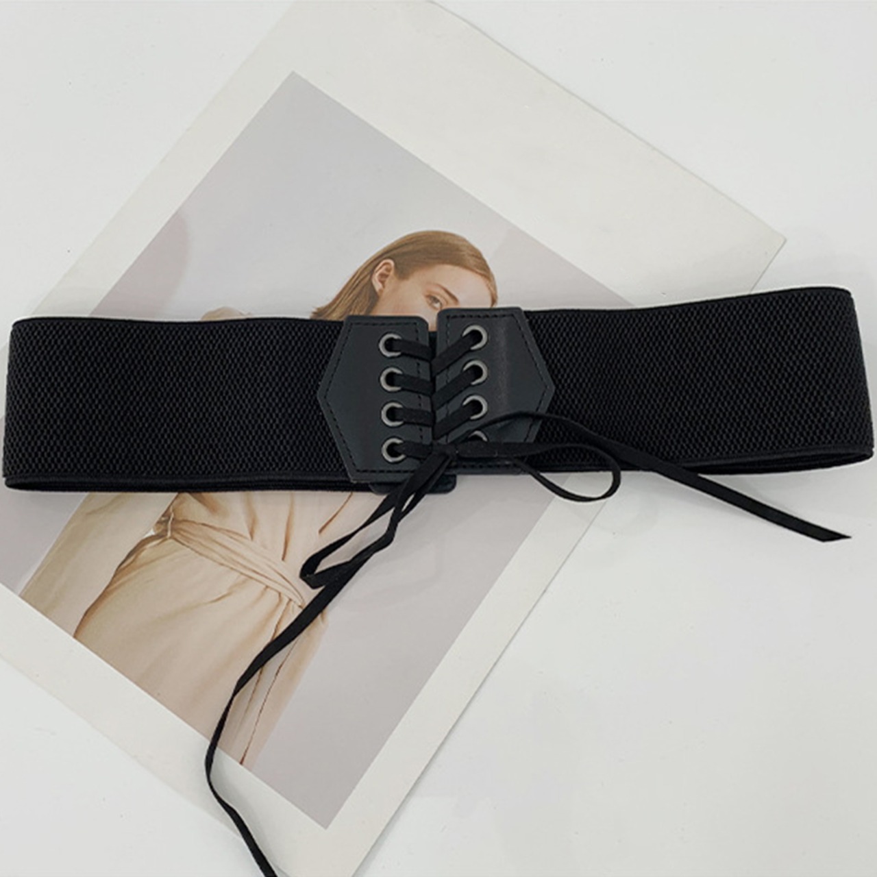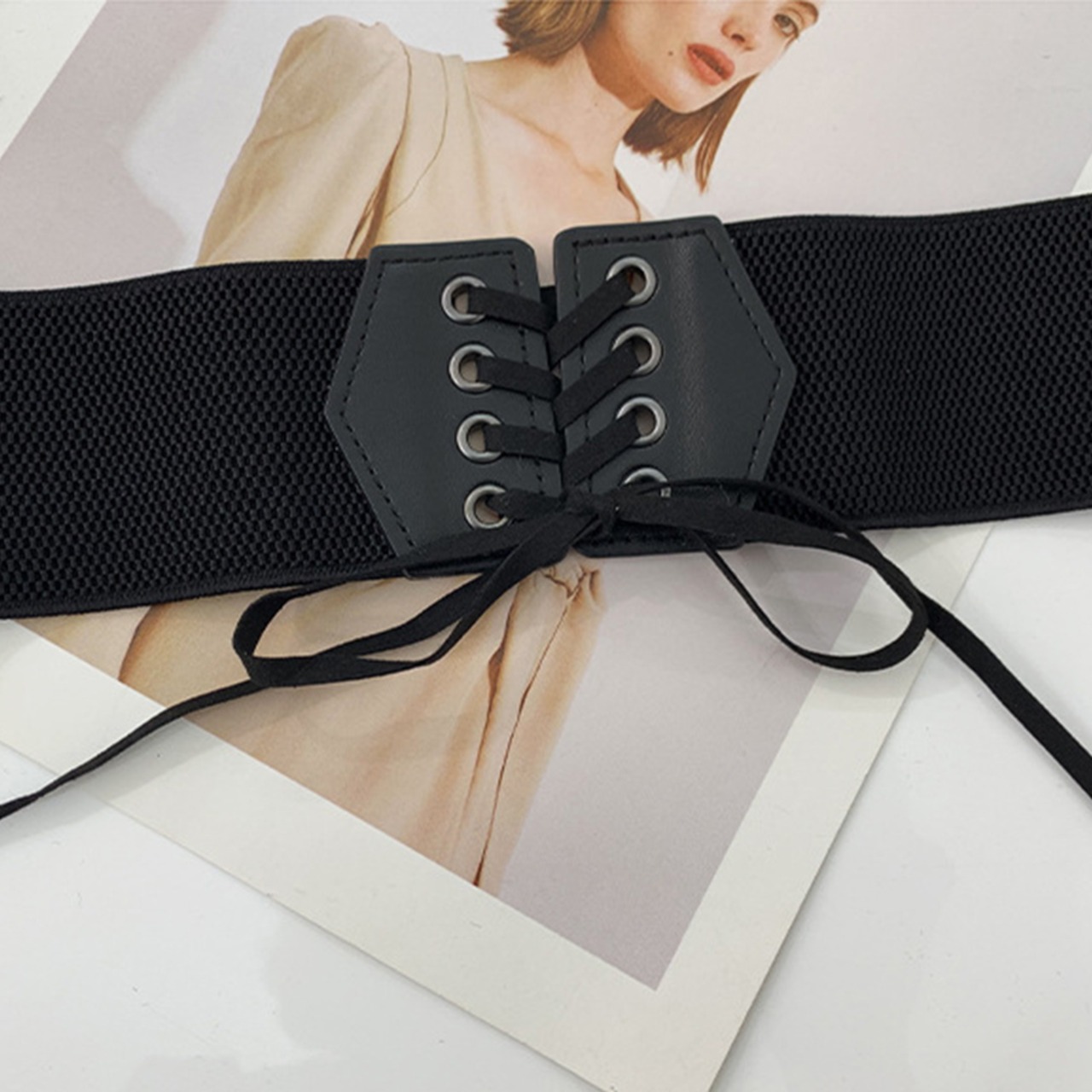 フロントにレースアップのデザインで仕上げたサッシュベルトが新登場