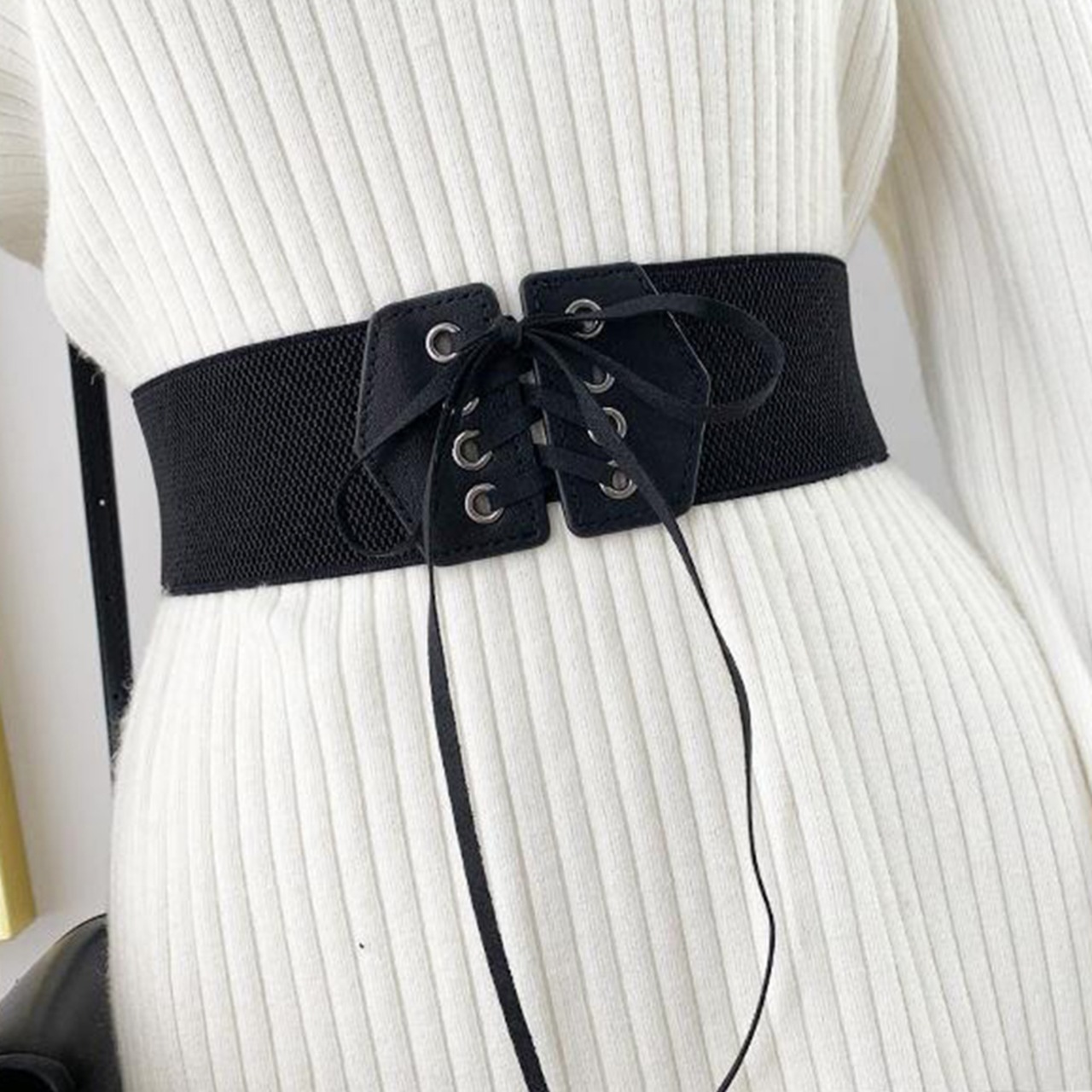 ゴム素材なのでズレにくく、いつものコーデにプラスするだけで、シルエットを変化させ、フィット感がアップする