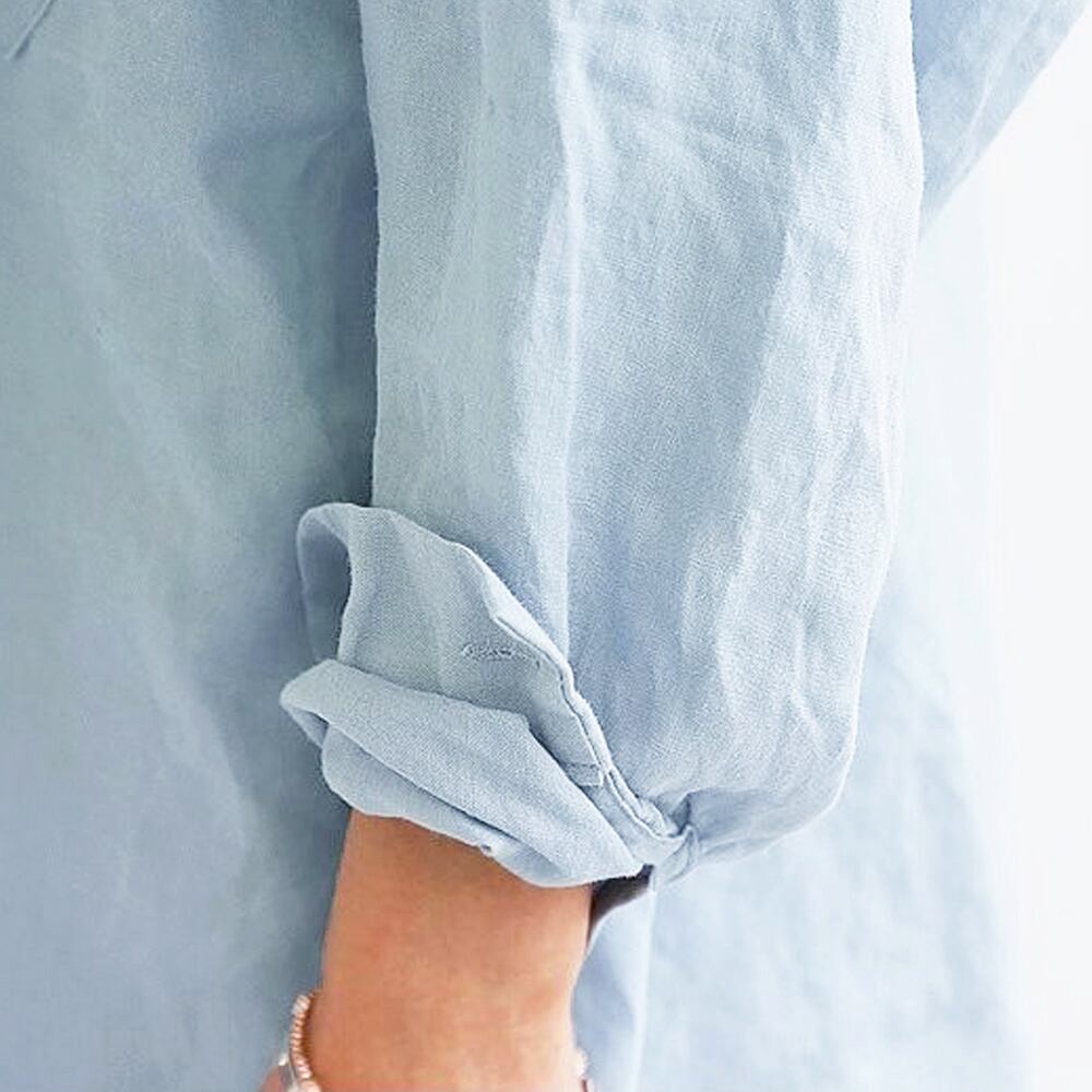 袖ボタン留めてロールアップ可能のロングシャツブラウス