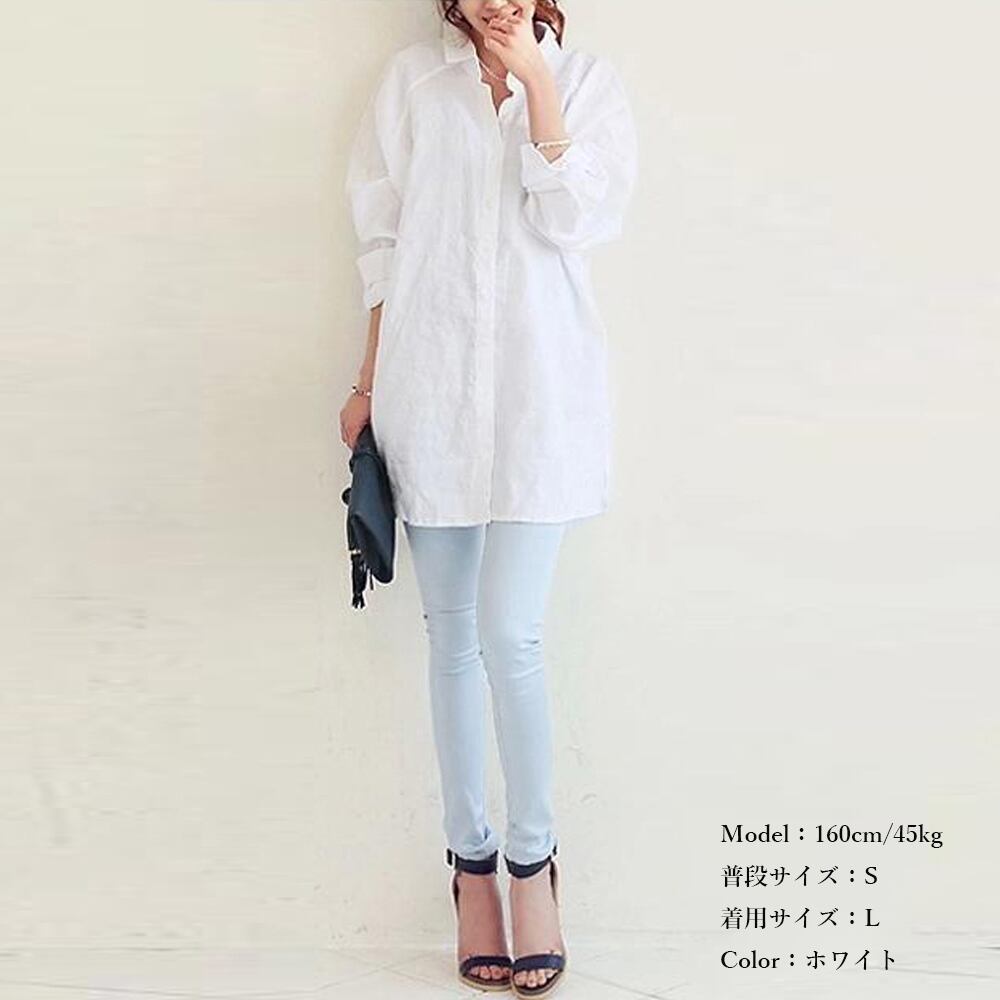 レディース 体型カバー 薄手 綿麻風ブラウス ゆったり 長袖シャツ カジュアル トップス 無地 羽織り通勤 30代
