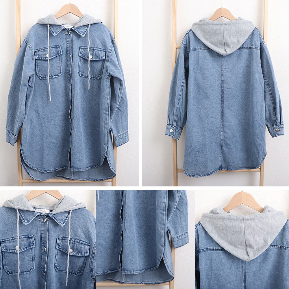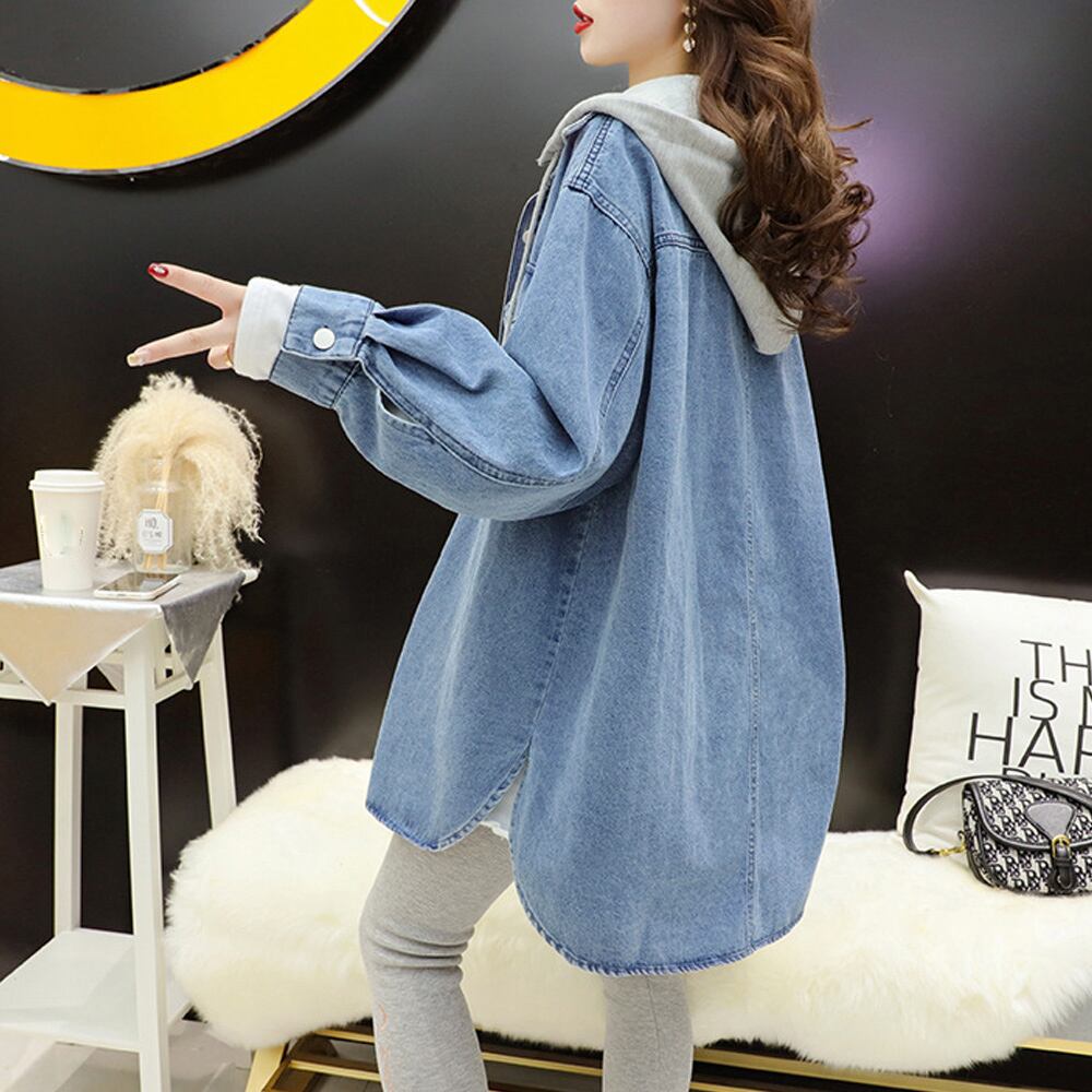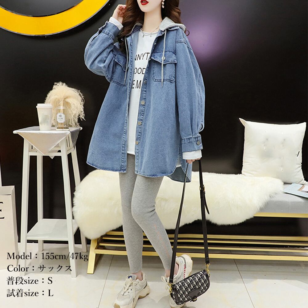 おしゃれ デニムコート 体型カバー 軽アウター 春秋 ボタン開き Gジャン レイヤード風パーカー ゆるシルエット