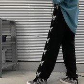 一見シンプルながらもサイドにバタフライプリントをあしらったことで一気に華やかになるフェミニンさのあるカジュアルボトムス