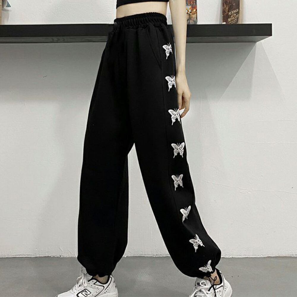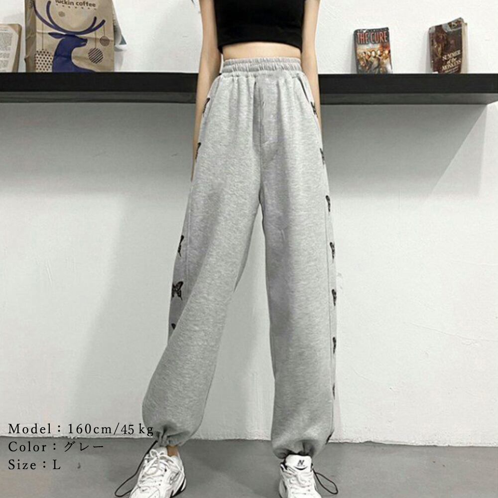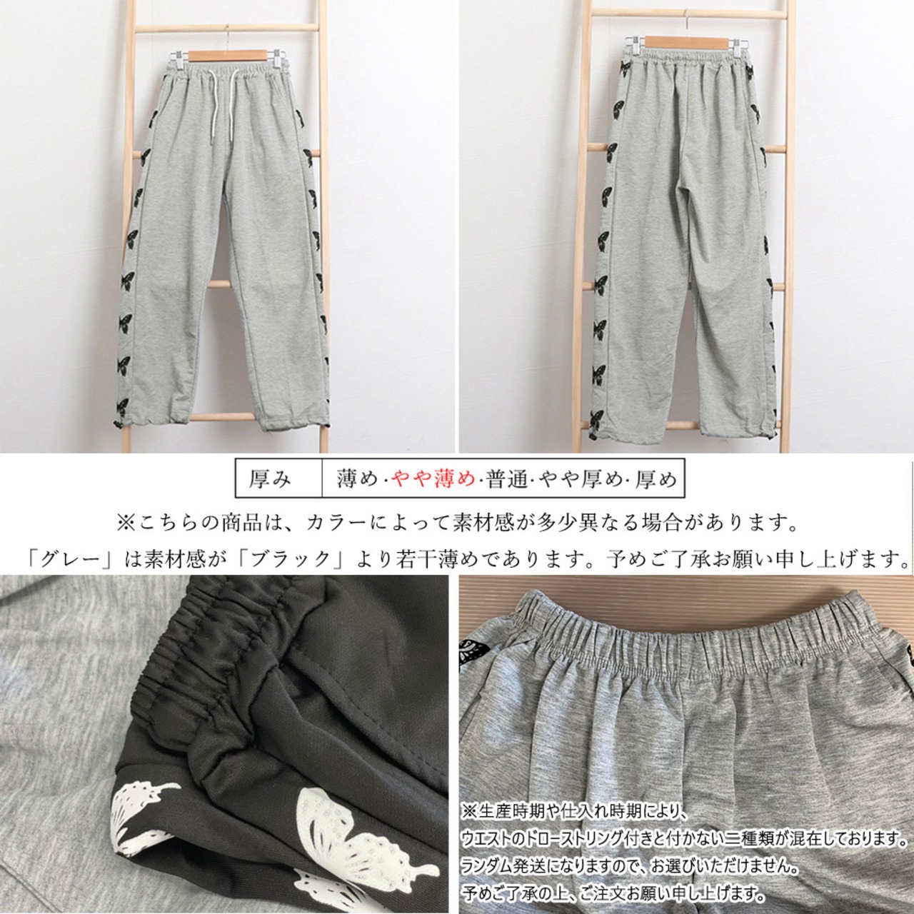 ロングパンツ レディース 韓国 サイドライン ドローストリング ジャージ 蝶々 ハイウエスト ワイドパンツ ゆったり