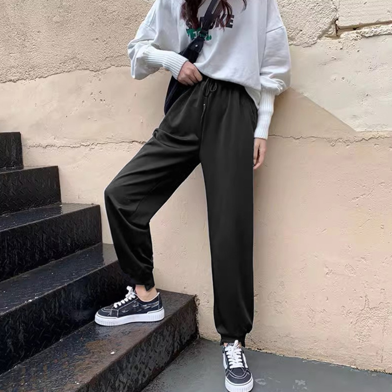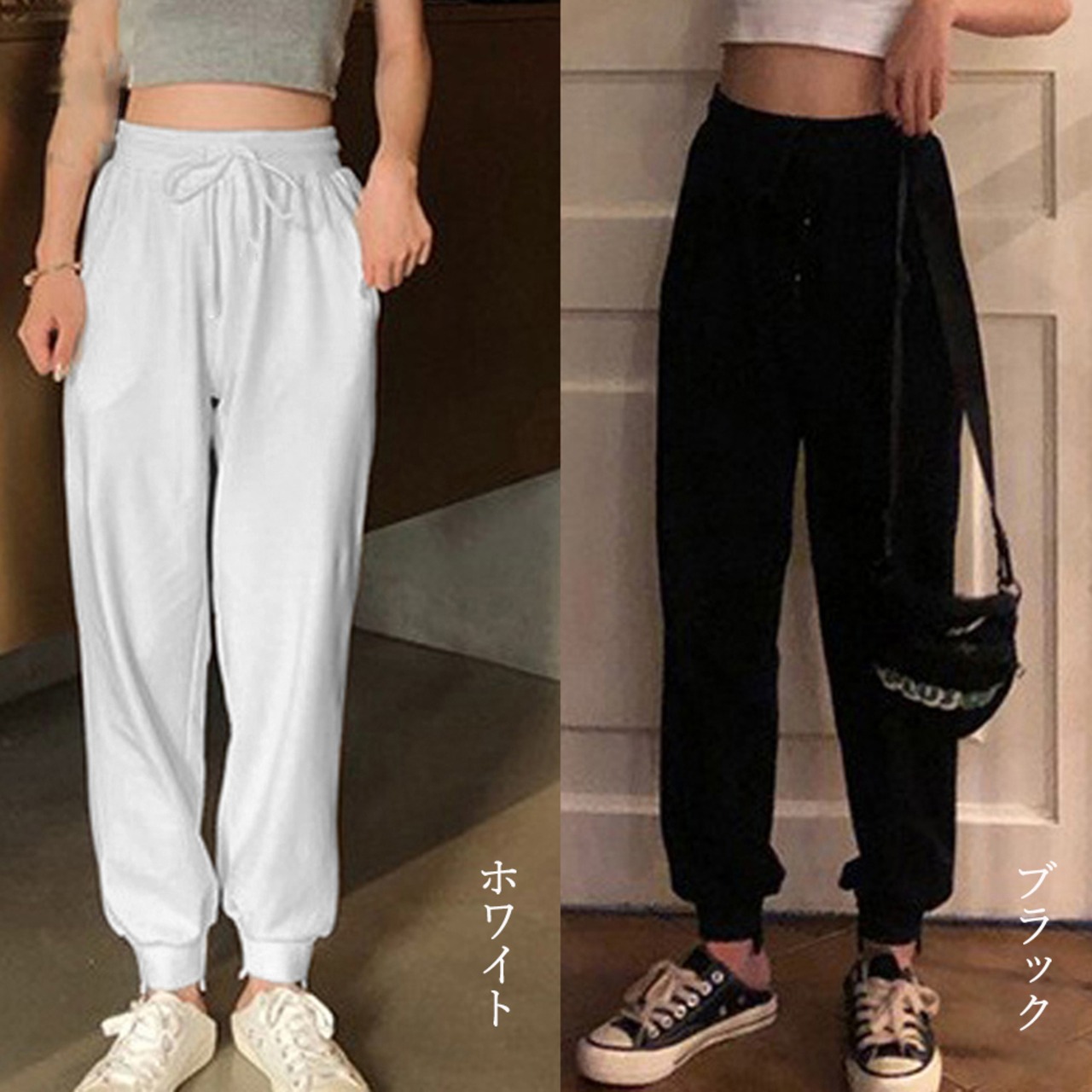 薄手 ウエストゴム ロングパンツ 体型カバー ゆったり 韓国ファッション カジュアルパンツ ハイウエスト ジョガーパンツ