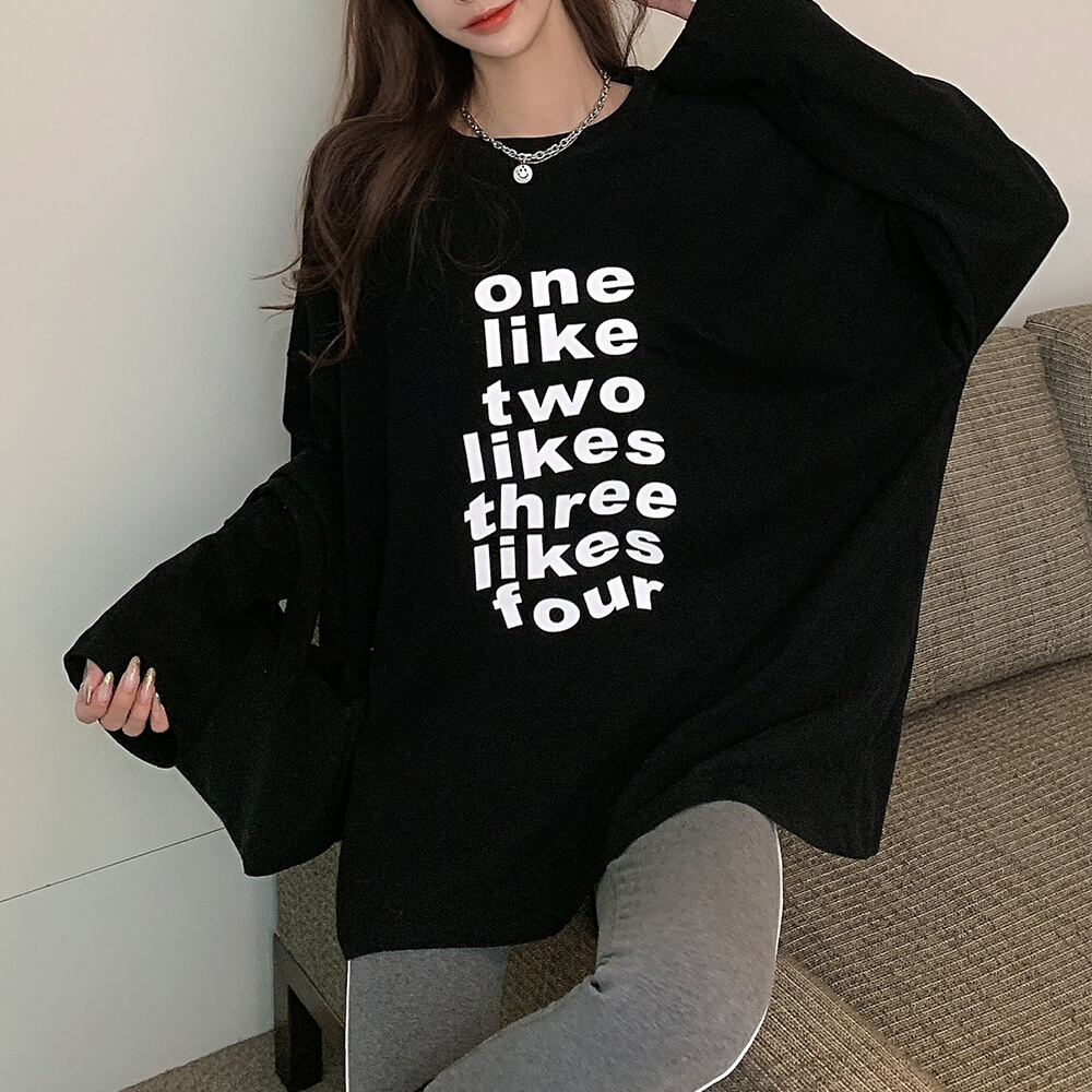 カットソー トップス 韓国 ロゴトップス オーバーサイズ ゆったり 体型カバー カジュアル おしゃれ 英字ロゴ