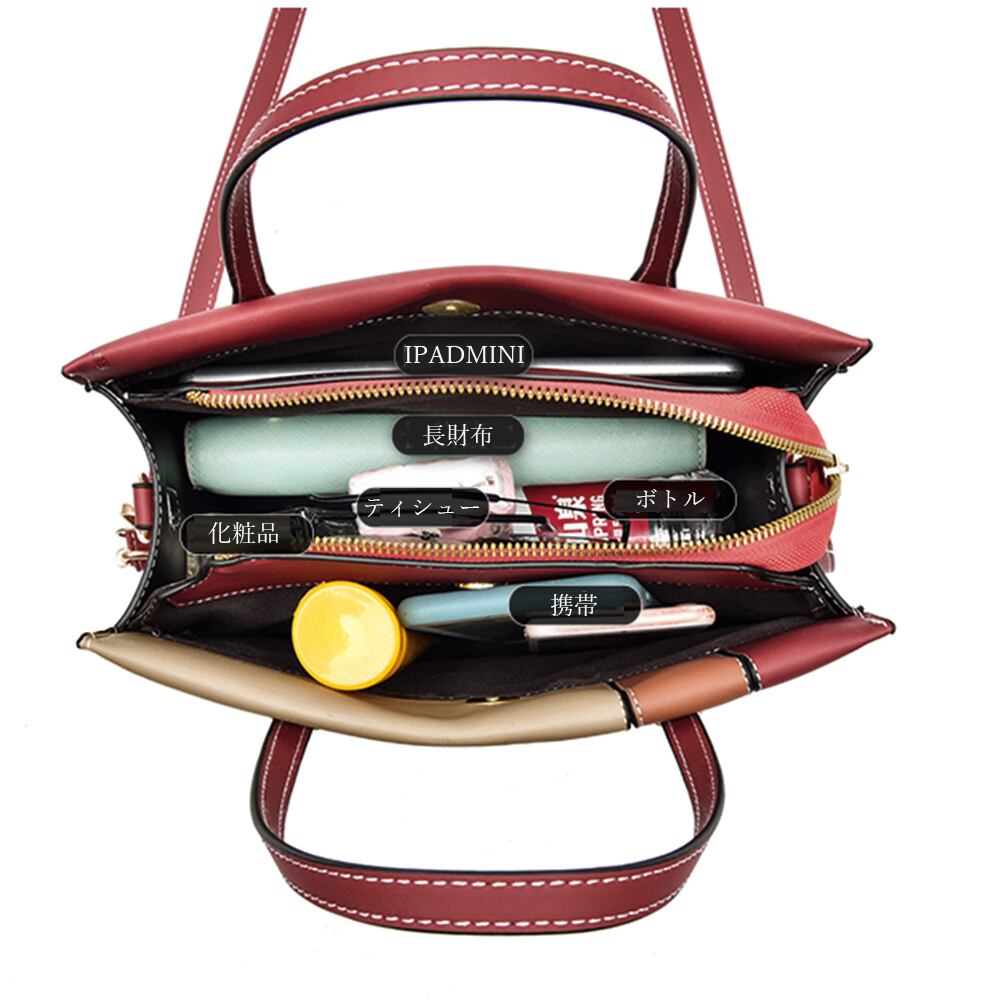 レディース 配色ハンドバッグ PUレザーおしゃれ 大容量 肩掛けバッグ マチ広ミニトートバッグ 鞄 大人かわいい
