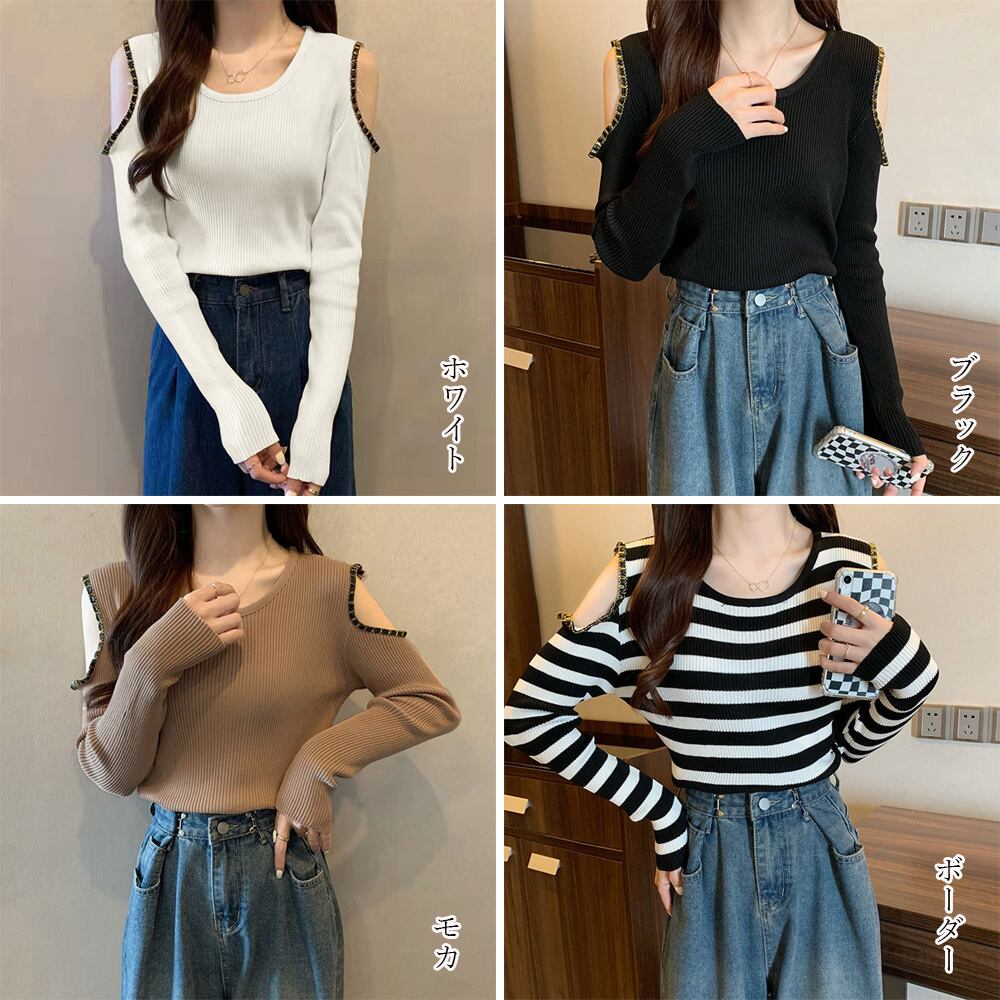 ニットトップス レディース 肩出し長袖