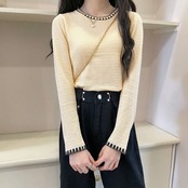 ニットソー フェミニン 長袖トップス ラウンドネック フェミニン ニットセーター カジュアル インナー 無地