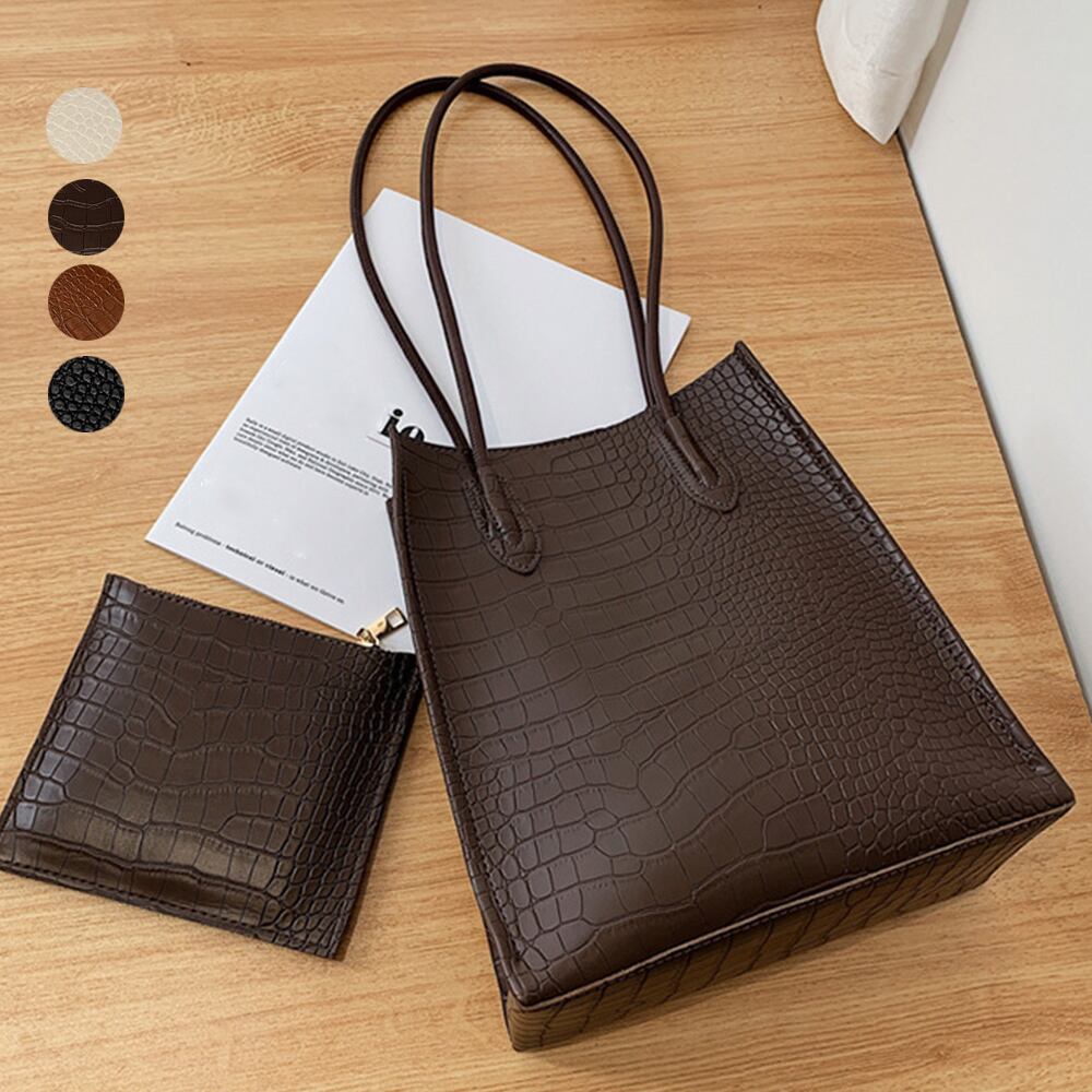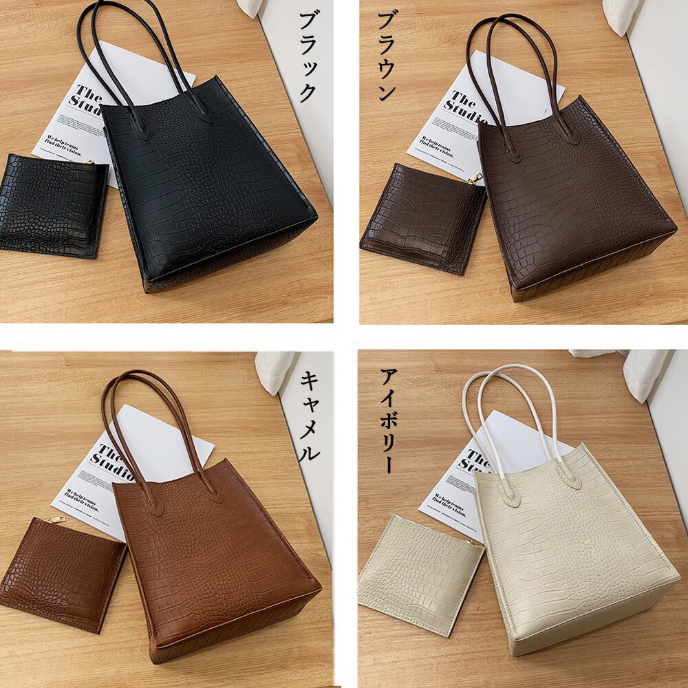 レディース PUレザー 肩掛けバッグ 2点セット おしゃれ スクエアカバン 大容量 縦型 かばん 手提げバッグ 30代 40代