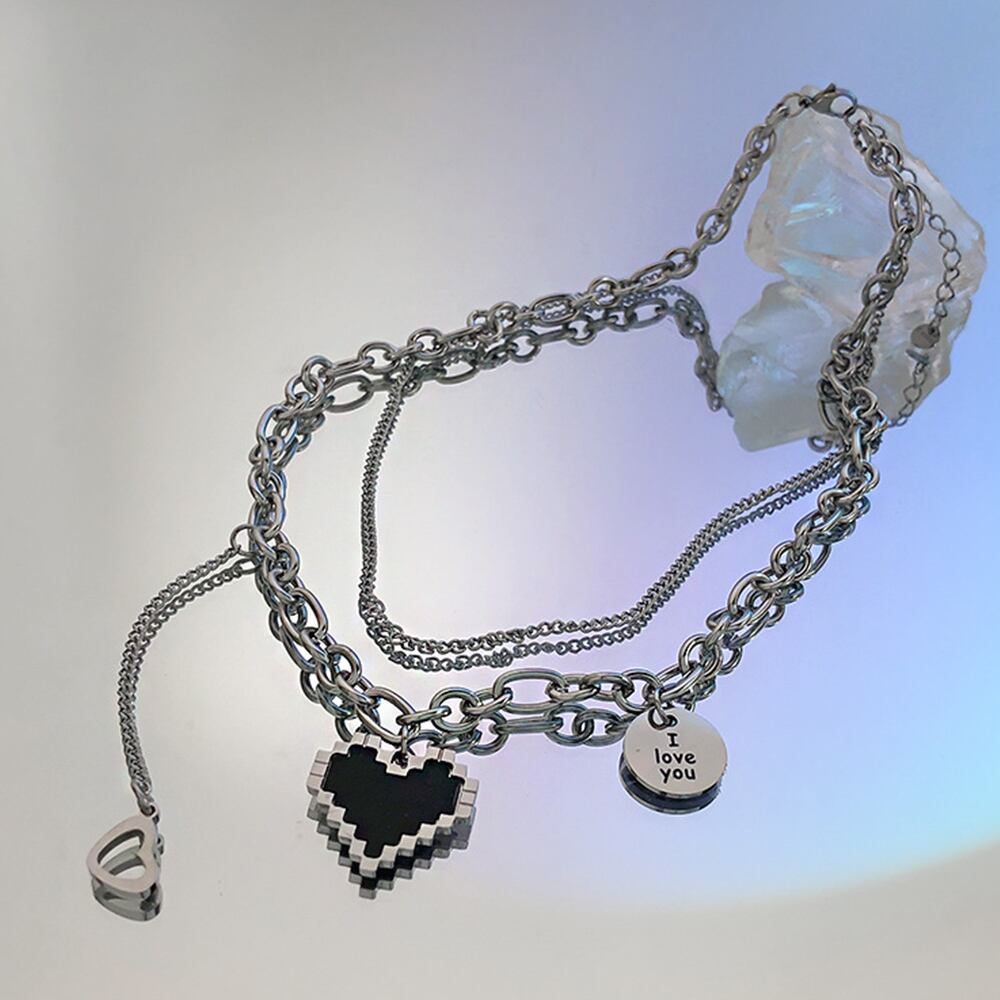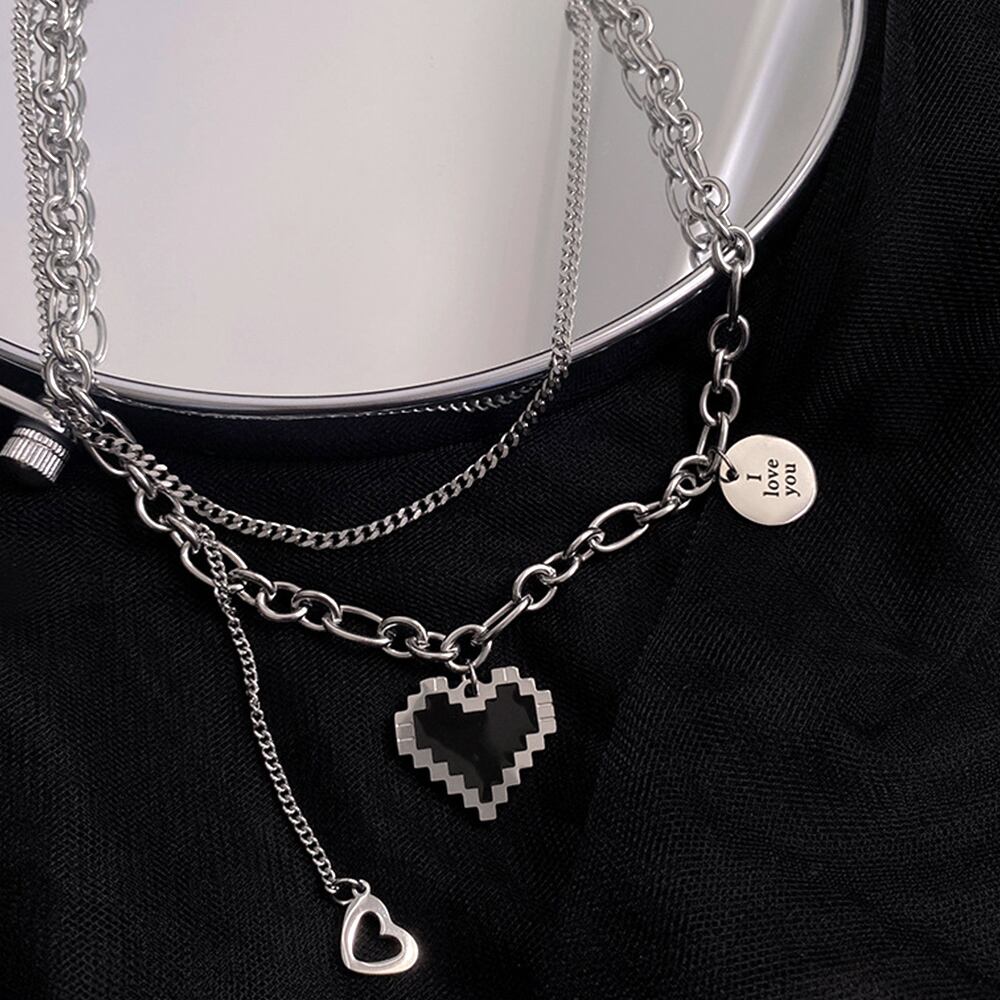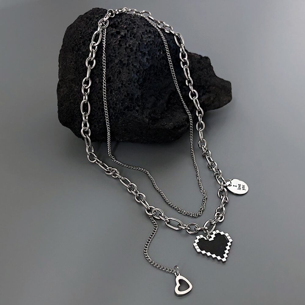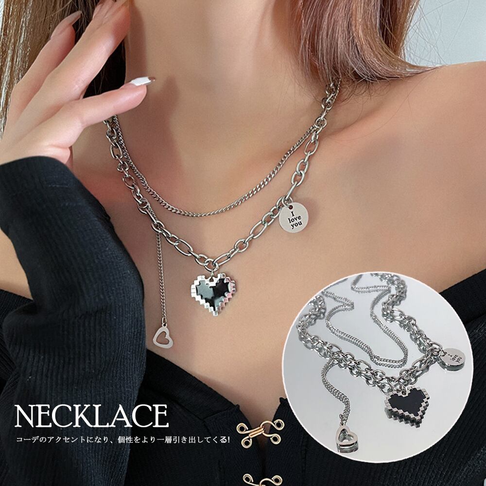 メタルハート 2連ネックレス レディース