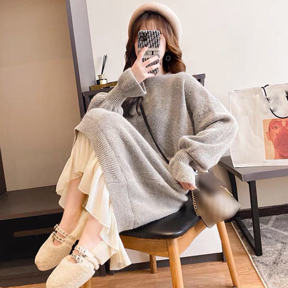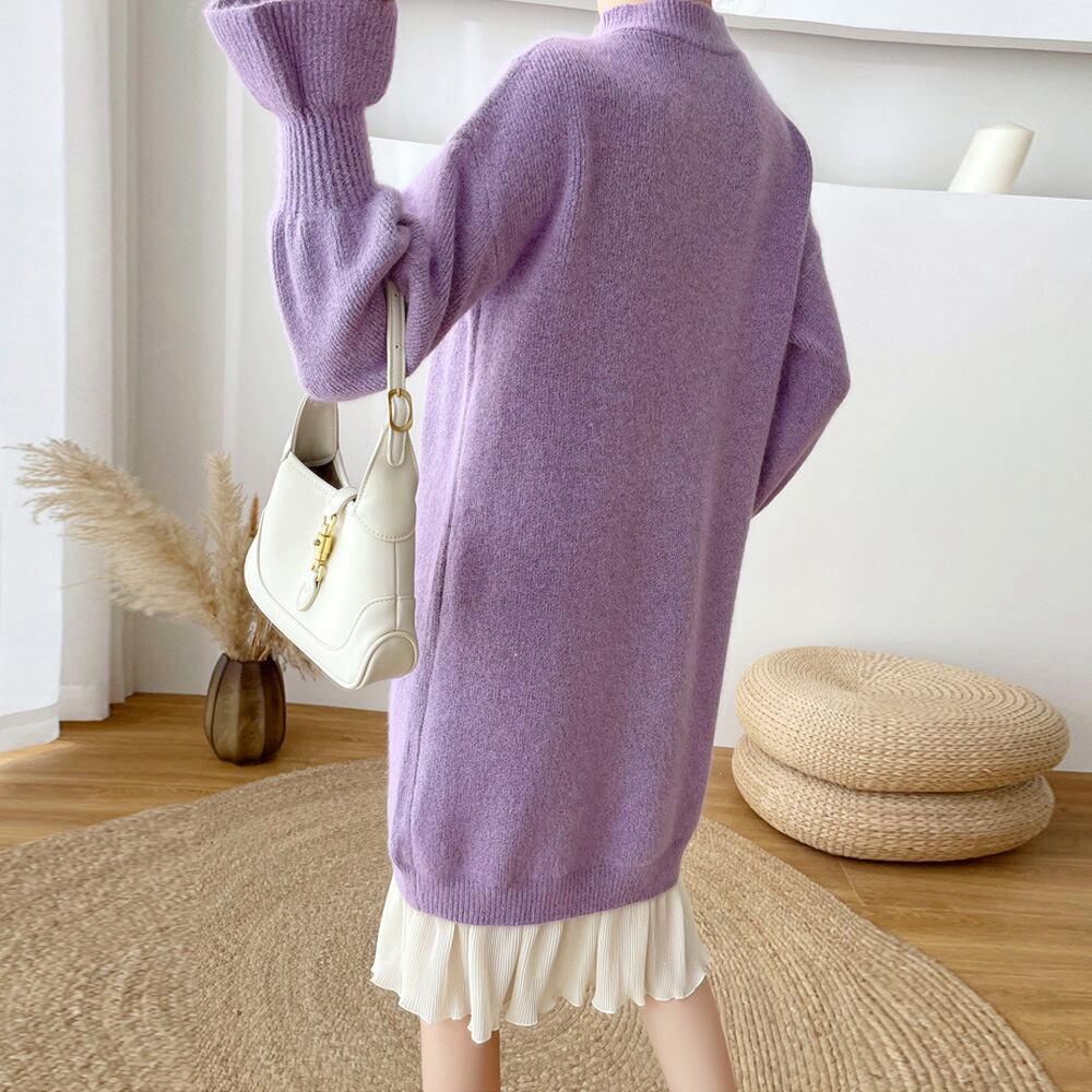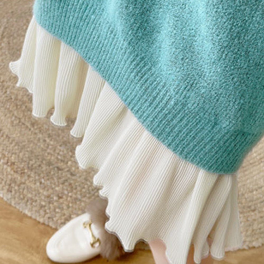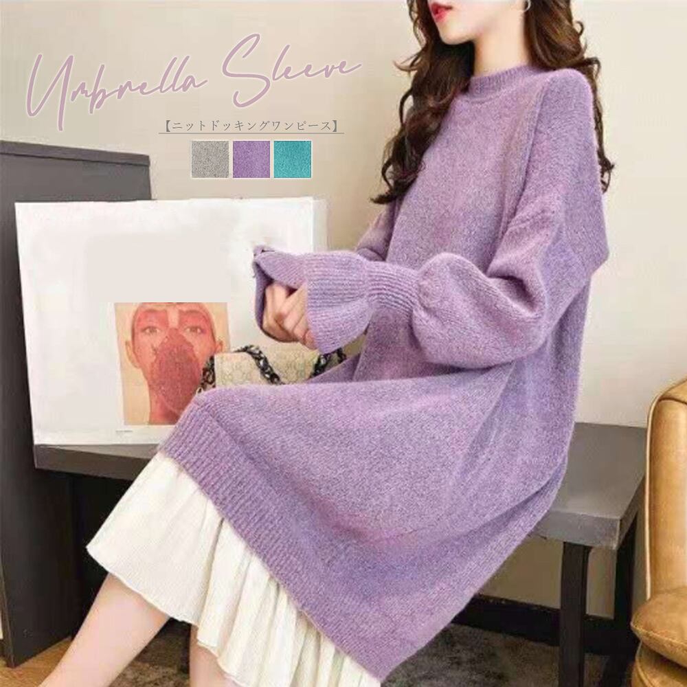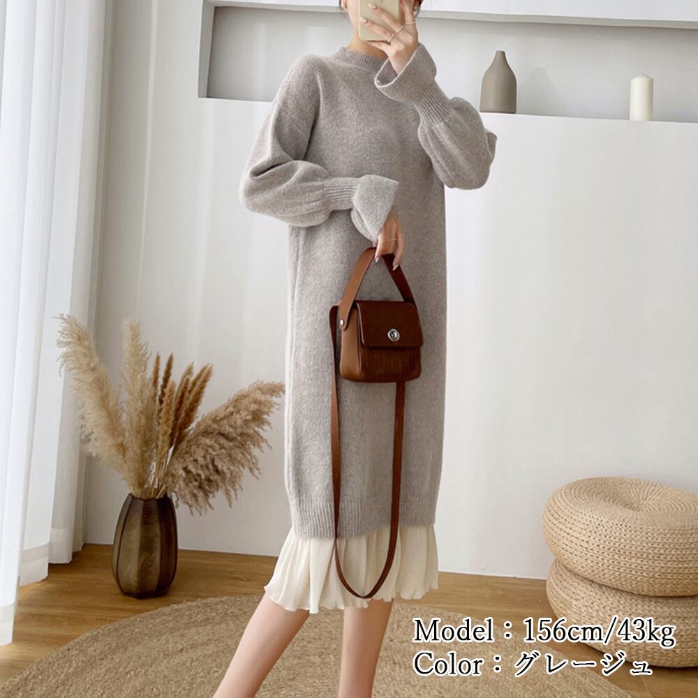 シフォン 切り替え 韓国 ファッション ワンピース 秋冬 アンブレラスリーブ フリル袖 膝丈ワンピース プチハイネック