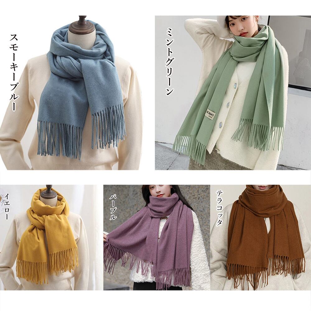 レディース ふんわり フリンジストール リバーシブル 秋冬 ロング スカーフショール かわいい マフラー 無地厚手 韓国