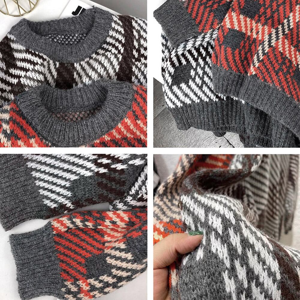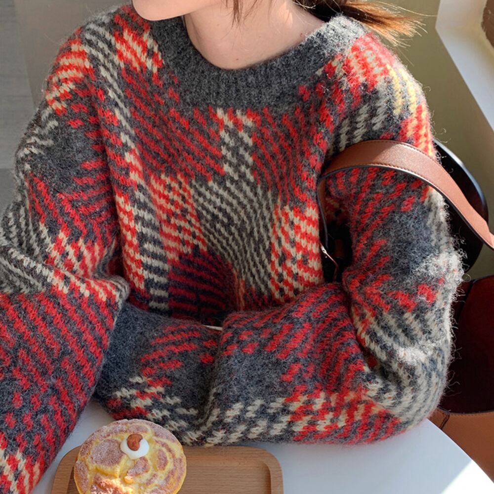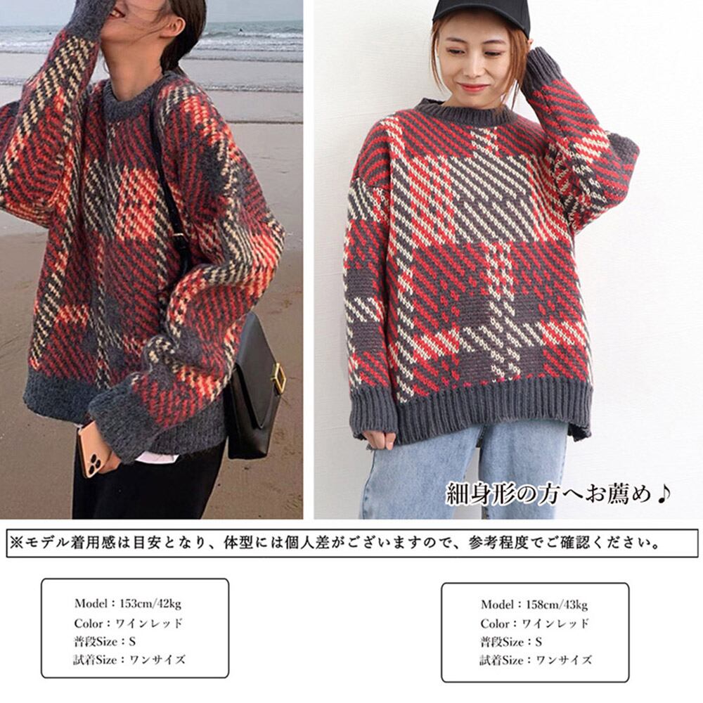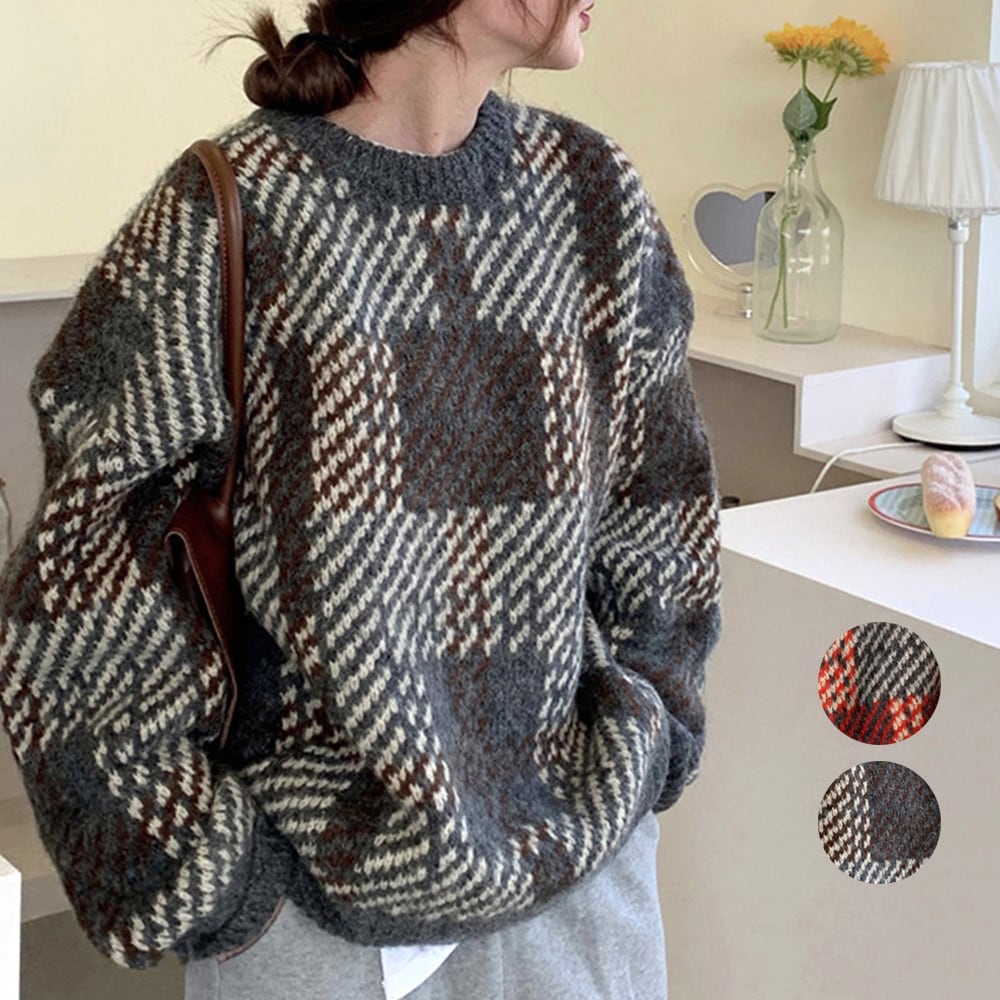 レディース レトロ ニットプルオーバー ラウンドネック おしゃれ 厚手 ニットトップス あたたか 長袖ニットソー