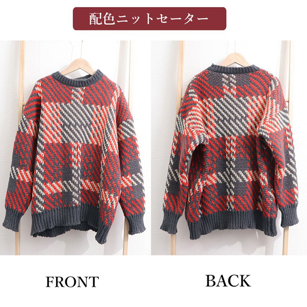 シンプルなデザインで秋冬コーデの主役になってくれる配色ニットセーターです