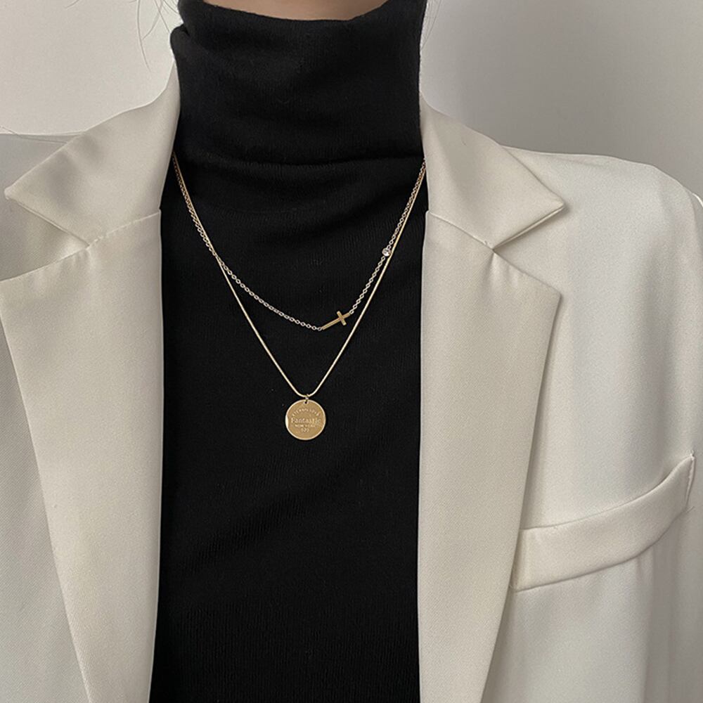 2連チェーンネックレス クロスモチーフ