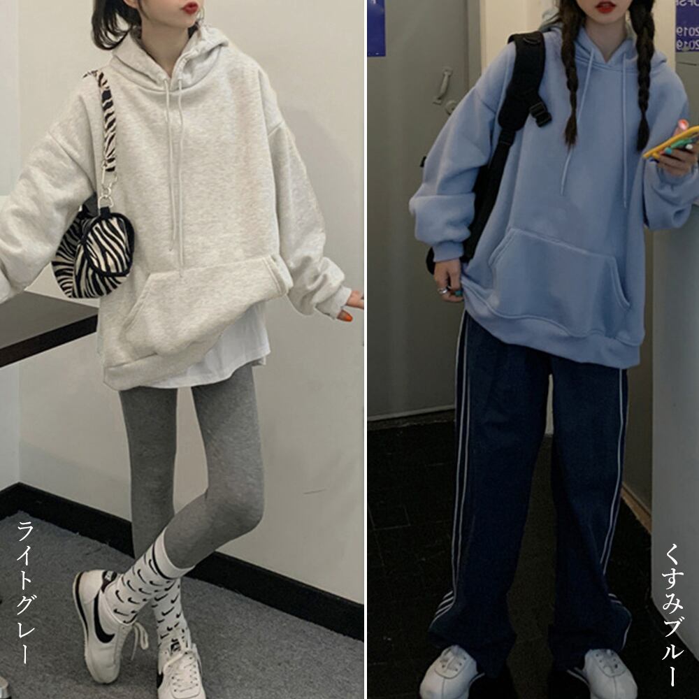 ビッグシルエット パーカー ロング丈 スウェット カジュアル シンプル フード付きトレーナー おしゃれ プルオーバー