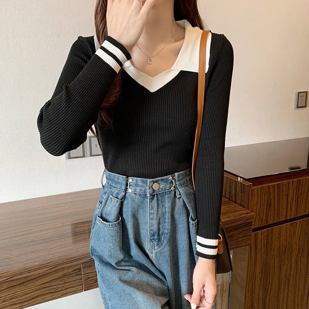 【日本倉庫即納】ニットトップス Vネック 襟付きニット