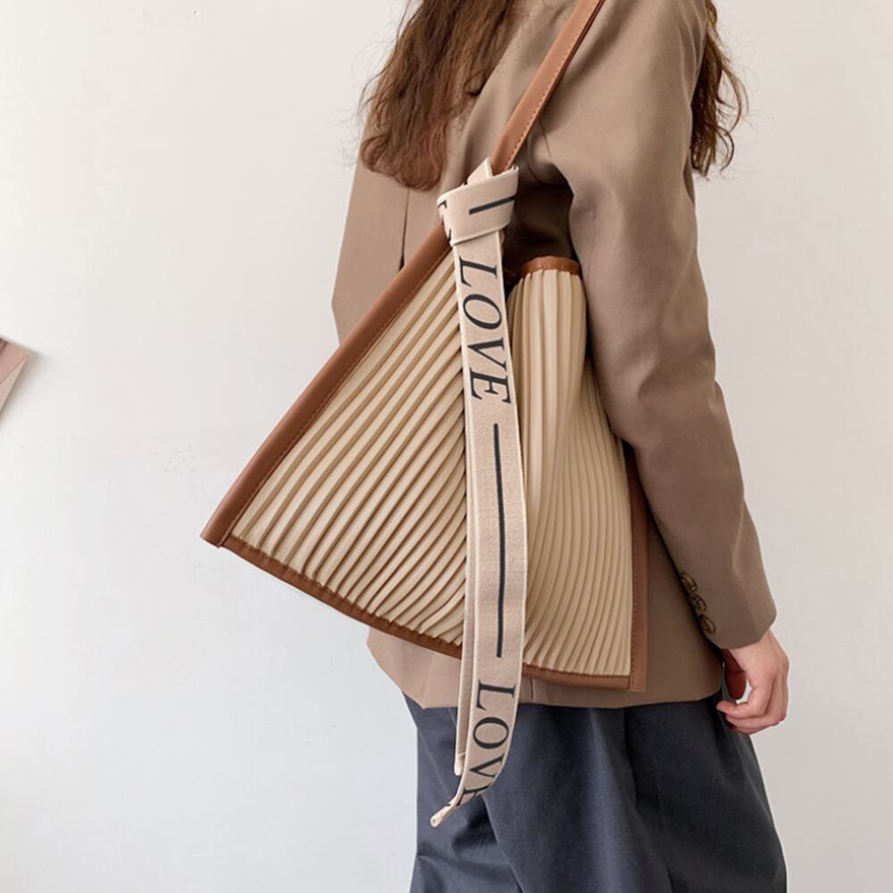 いつものコーデに合わせるだけで、さりげなくトレンド感を演出してくれプリーツトートバッグ