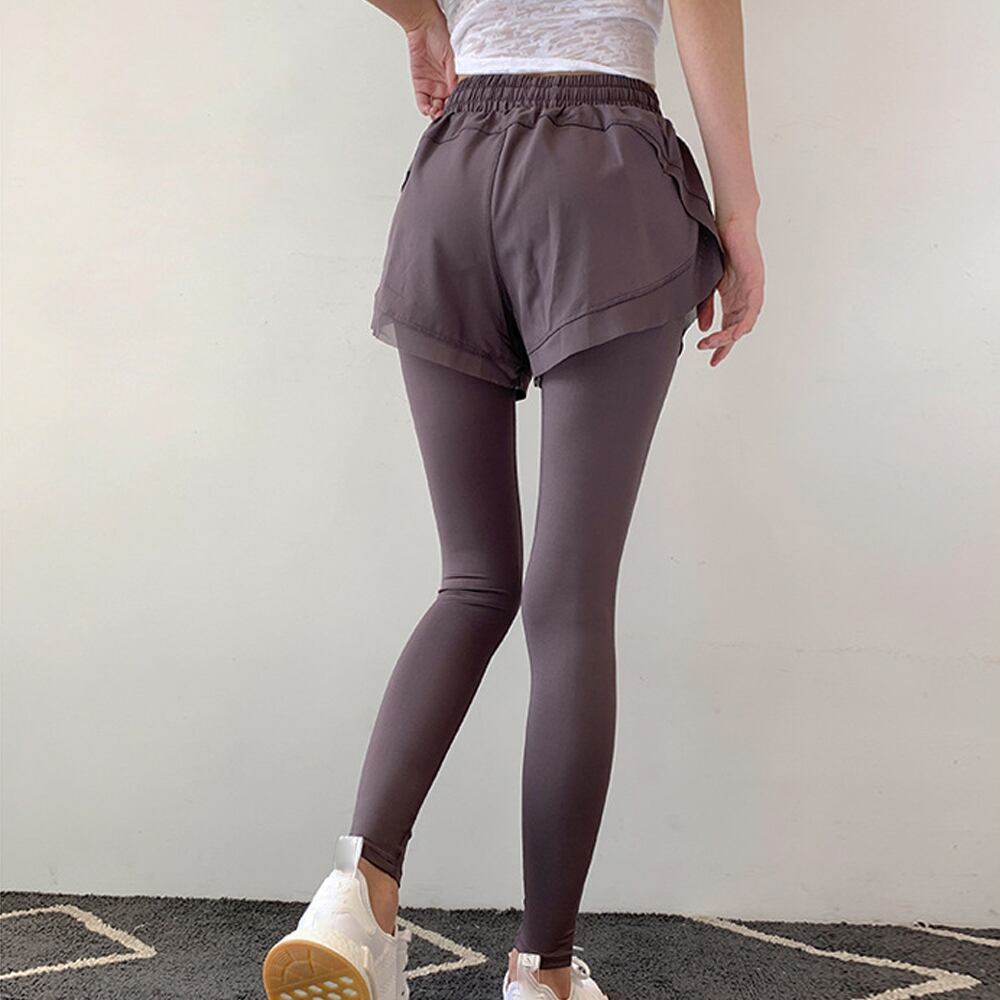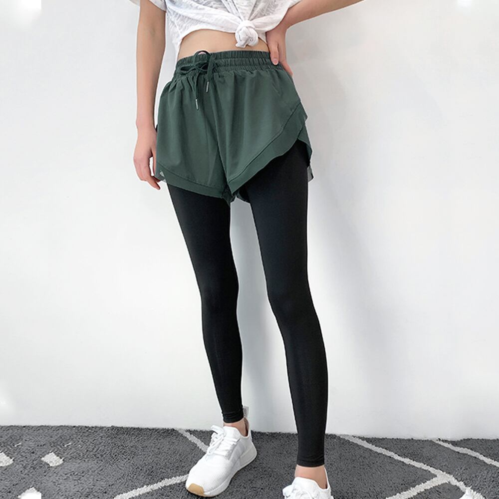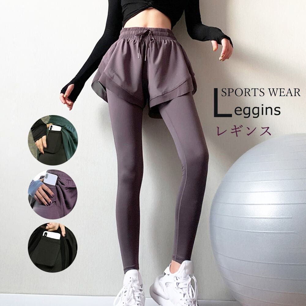 ヨガレギンス ショートパンツ付き フィットネスパンツ ポケット付き ジムウェア