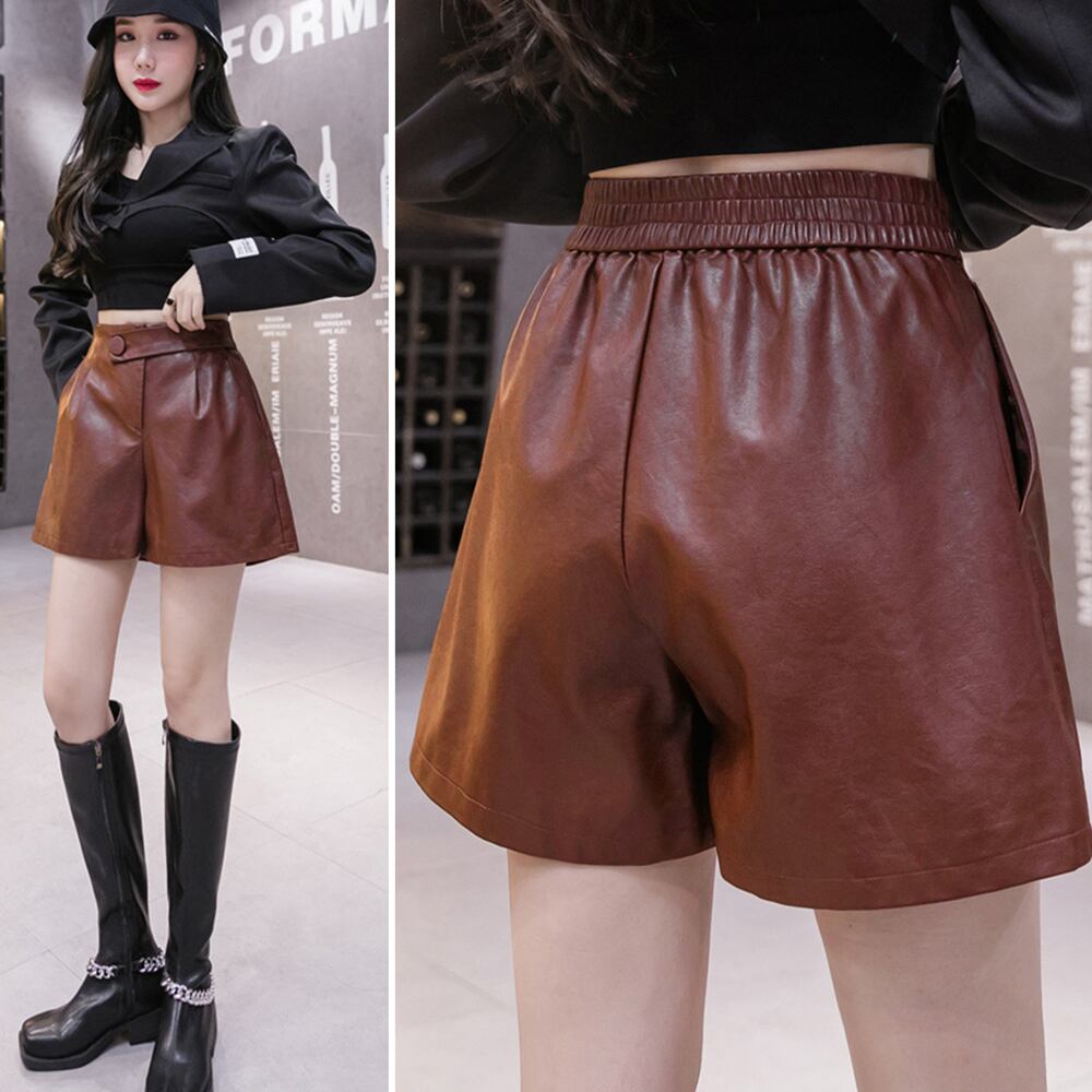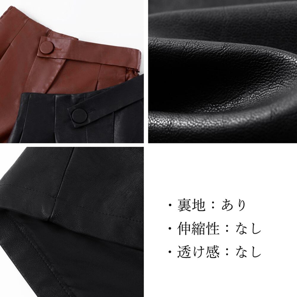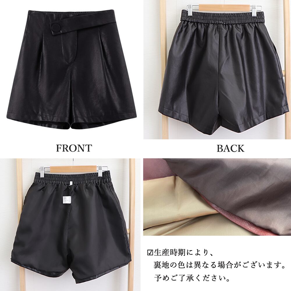 PUレザーパンツ ハイウエスト 春秋冬 ショーパン らくちん 裾広 ポケット付き キュロット 美脚シルエット ボトムス